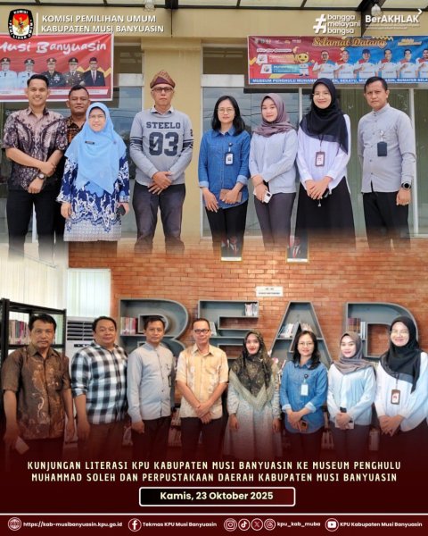 #TemanPemilih, Kepala Subbagian didampingi Staf Parhumas dan SDM KPU Kabupaten Musi Banyuasin Melakukan Kunjungan Literasi ke Museum Muhammad Soleh dan Perpustakaan Daerah Kabupaten Musi Banyuasin. (Kamis, 23/10/2025)