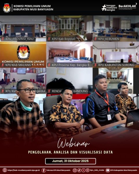 #TemanPemilih, Kepala Subbagian Perencanan, Data dan Informasi di damping Staf Sekretariat bagian Perencanaan, Data dan informasi KPU Kabupaten Musi Banyuasin Mengadiri Undangan Webinar melalui Zoom Meeting dalam rangka Webinar Pengolahan, Analisa dan Visualisasi Data. (Jumat, 31/10/2025)
