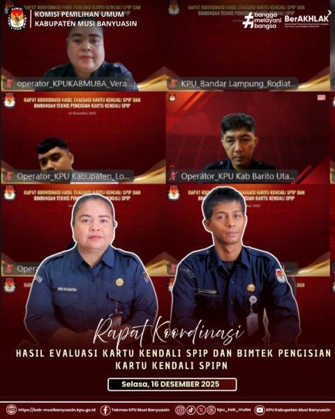 TemanPemilih, KPU Kabupaten Musi Banyuasin menyampaikan mengikuti zoom meeting Rapat Koordinasi Hasil Evaluasi Kartu Kendali SPIP dan Bimtek Pengisian Kartu Kendali SPIP dilingkungn KPU.