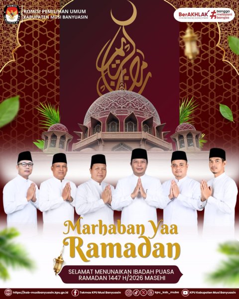 Segenap keluarga besar KPU Kabupaten Musi Banyuasin mengucapkan Selamat menunaikan ibadah puasa.