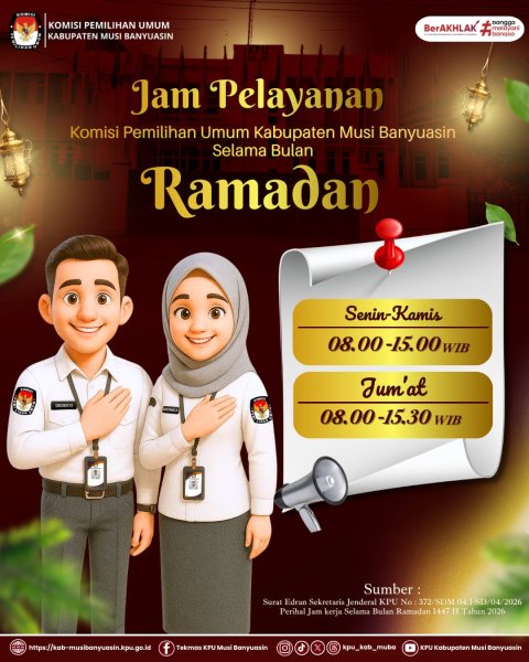 Jadwal Pelayanan Publik di Lingkungan KPU Kabupaten Musi Banyuasin Selama Bulan Ramadan 1447 H/2026 M