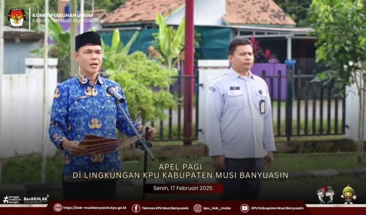 #TemanPemilih, Kasubbag Perencanaan, Data dan Informasi KPU Kabupaten Musi Banyuasin, Bapak Yusnan memimpin Apel Pagi Di Lingkungan KPU Kabupaten Musi Banyuasin,