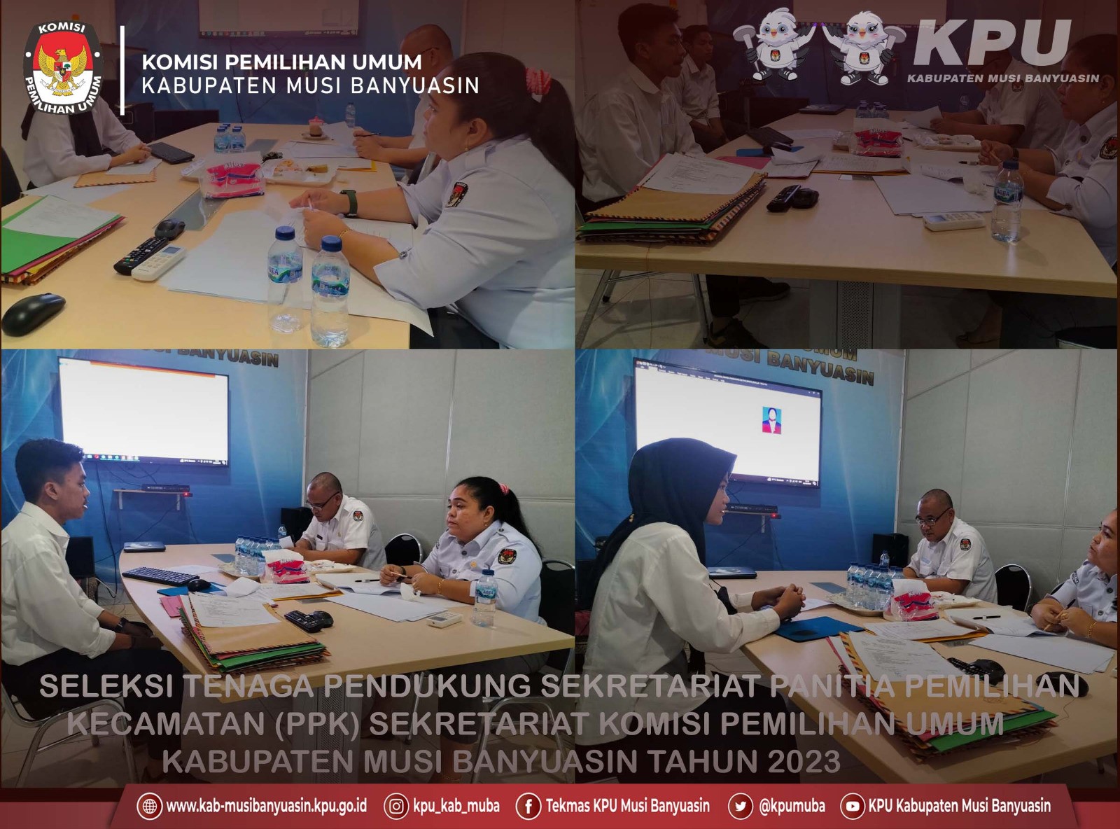 #TemanPemilih, KPU Kabupaten Musi Banyuasin melaksanakan seleksi wawancara hari ke-3 calon Tenaga Pendukung Sekretariat Panitia Pemilihan Kecamatan (PPK) Di Ruang Rapat Ulak Lia kantor KPU Kabupaten Musi Banyuasin. Senin (6/3/2023).