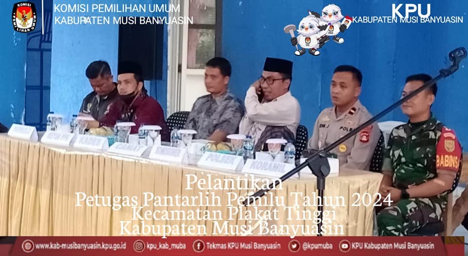 #TemanPemilih, Minggu, 12 Februari 2023, KPU Kabupaten Musi Banyuasin melakukan Monitoring dan Supervisi pelaksanaan Pelantikan Pantarlih di Kecamatan Plakat Tinggi yang di Koordinir oleh Anggota KPU Kabupaten Musi Banyuasin Amril Nurman dihadiri oleh Kasubbag Perencanaan, data dan informasi Yusnan, Camat Plakat Tinggi, Panwascam Plakat Tinggi, Perwakilan Danramil, Perwakilan Polsek Plakat Tinggi.