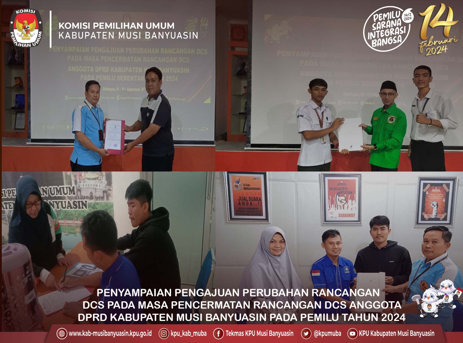 #TemanPemilih, KPU Kabupaten Musi Banyuasin menerima Penyampaian Pengajuan Perubahan Rancangan DCS pada masa Pencermatan Rancangan DCS Anggota DPRD Kabupaten Musi Banyuasin Pada Pemilu Tahun 2024.