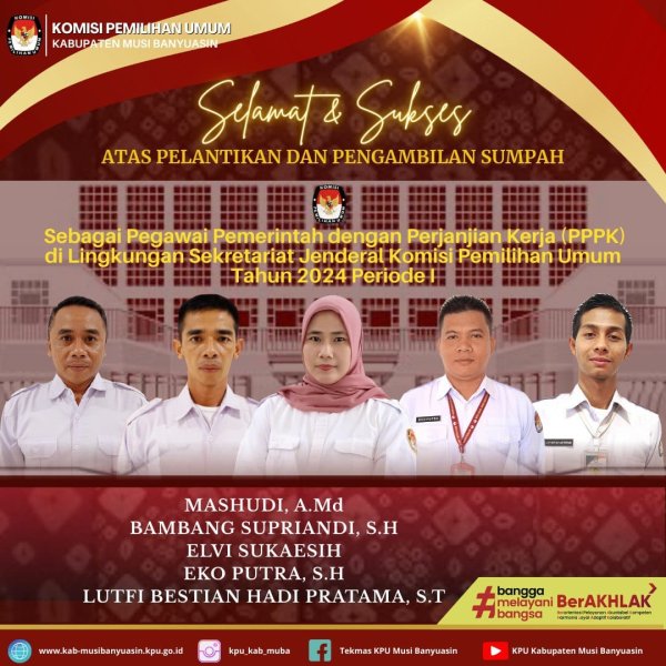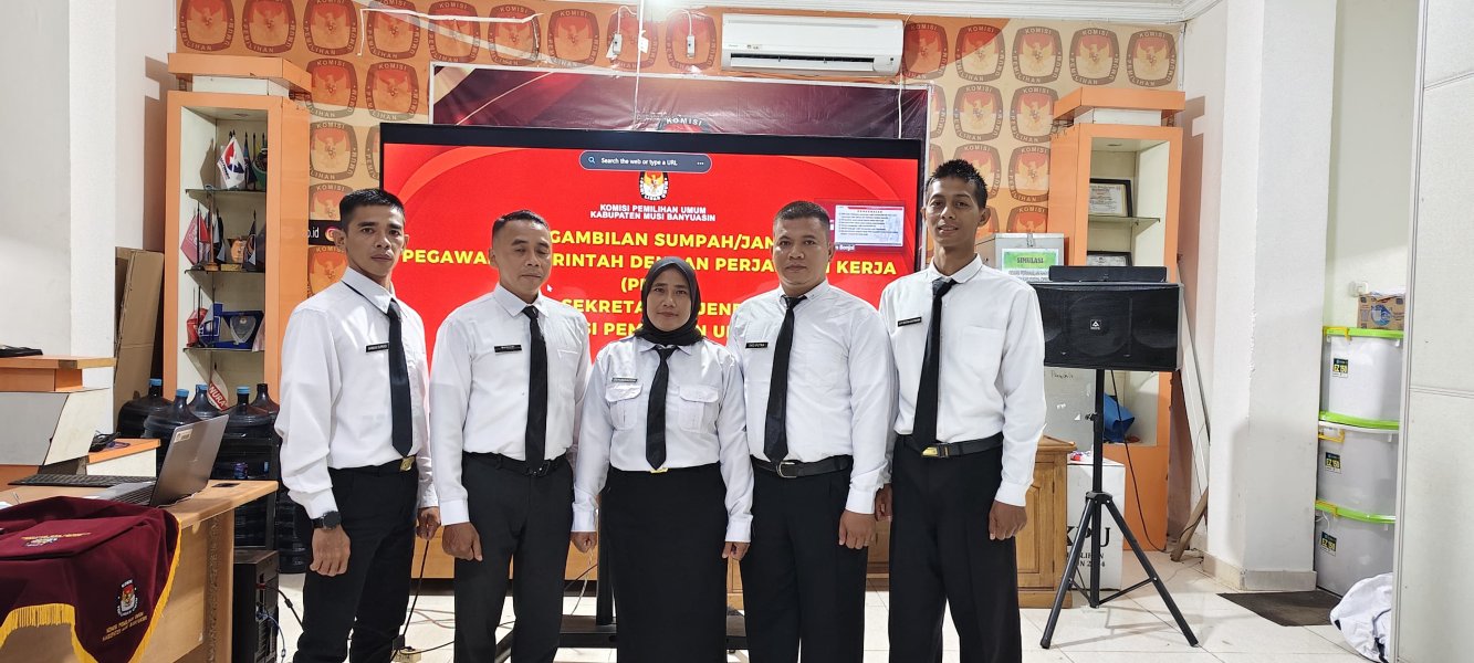 #temanpemilih, Sebanyak 5 orang PPPK Tahap 1 mengikuti kegiatan Pembekalan Pegawai Pemerintah dengan Perjanjian Kerja (PPPK) di Lingkungan Sekretariat Jenderal Komisi Pemilihan Umum Tahun Anggaran 2024 Periode I secara daring di Ruang Rapat Serasan Sekate.