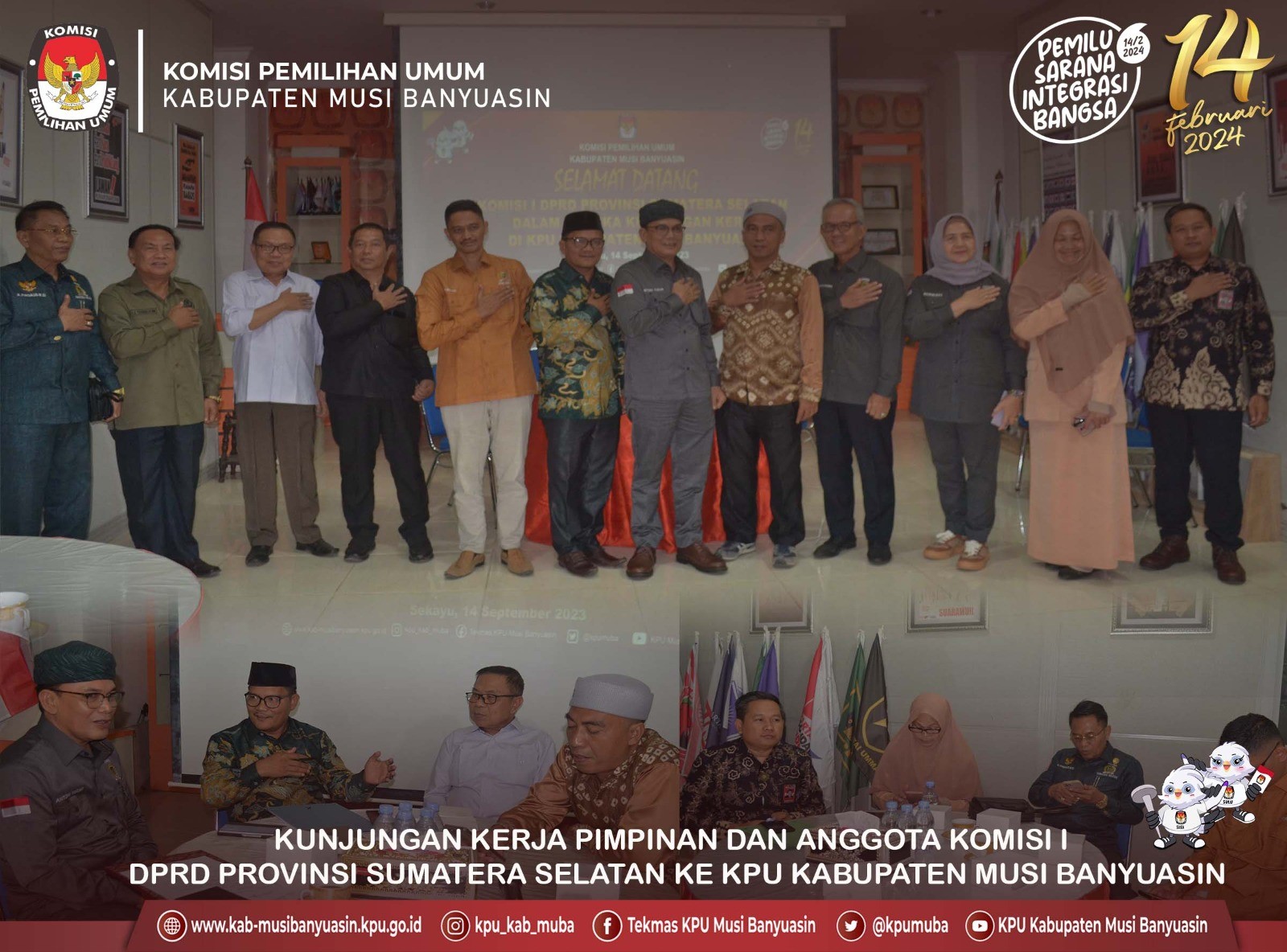 #TemanPemilih, Ketua KPU Kabupaten Musi Banyuasin Yupizer di dampingi Oleh Khoirul Anam anggota divisi Teknis penyelenggaraan, Amril Nurman anggota divisi perencanaan data dan informasi, Maryani anggota divisi Sosialisasi, pendidikan pemilih, partisipasi masyarakat dan SDM, dan Maryadi anggota divisi Hukum dan Pengawasan menerima Kunjungan Kerja Komisi 1 DPRD Provinsi Sumatera Selatan dalam rangka diskusi terkait dengan persiapan pelaksanaan Tahapan dan Jadwal Pemilu Legislatif dan PILPRES 2024., di Aula Serasan Sekate KPU Kabupaten Musi Banyuasin. Kamis, 14 September 2023.
