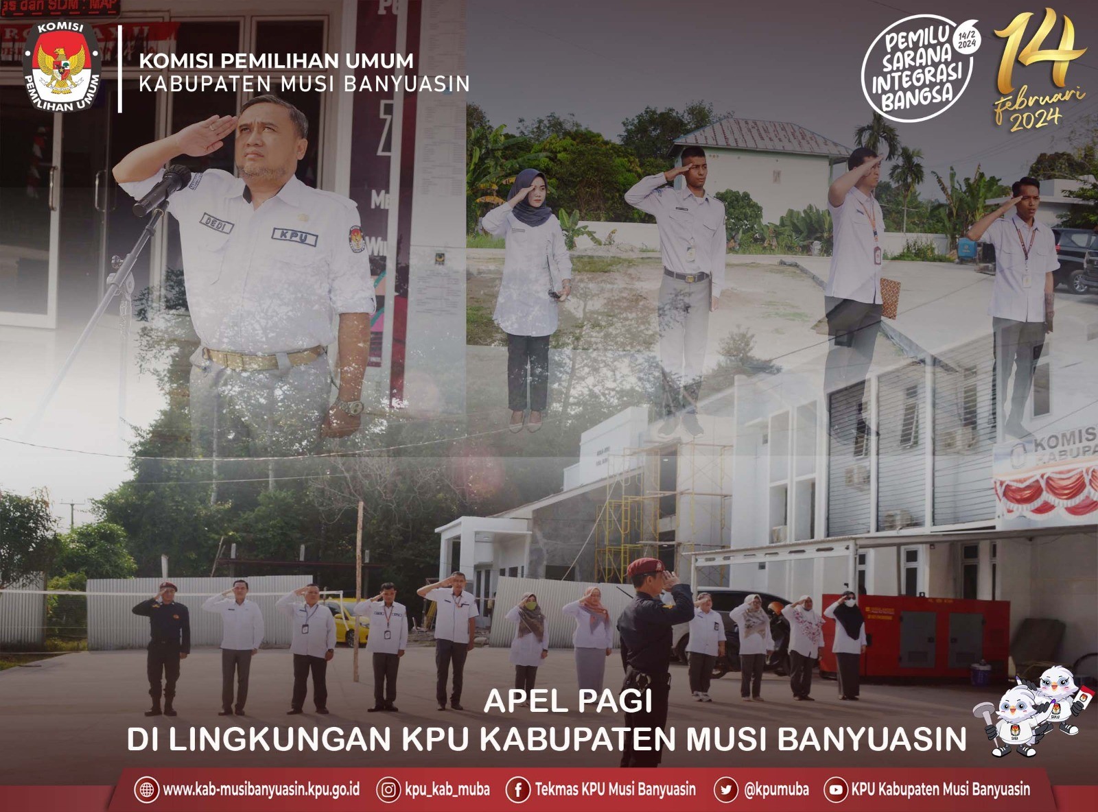 #TemanPemilih, KPU Kabupaten Musi Banyuasin melaksanakan Apel Pagi setiap hari Senin, Sekretaris KPU Kabupaten Musi Banyuasin (Dedi Irawan) bertindak selaku Pembina Apel Pagi yang di laksanakan di halaman KPU Kabupaten Musi Banyuasin, Senin (4/09/2023). Dalam amanat nya, Dedi mengingatkan PNS dan PPNPN yang ada di lingkungan KPU Kab. Musi Banyuasin untuk selalu mengikuti apel pagi setiap hari senin karena itu kewajiban kita sebagai abdi Negara, Dedi juga mengatakan Tahapan Logistik sudah didepan mata mari kita tetap selalu menjaga kesehatan agar kita bisa bekerja dengan optimal. Apel diikuti oleh ,Kasubbag, Staf PNS dan Tenaga Pendukung (PPNPN) di Lingkungan KPU Kabupaten Musi Banyuasin. #KPUMelayani #PemiluSerentak2024 ----------------------------------- Find Us On: Facebook: Tekmas KPU Musi Banyuasin Instagram: kpu_kab_muba Youtube: KPU Kabupaten Musi Banyuasin Twitter: @kpumuba Website: www.kab-musibanyuasin.kpu.go.id Alamat: Jl. Sekayu - Muara Teladan RT. 035 RW. 010 Kelurahan Balai Agung Kec. Sekayu - Musi Banyuasin.