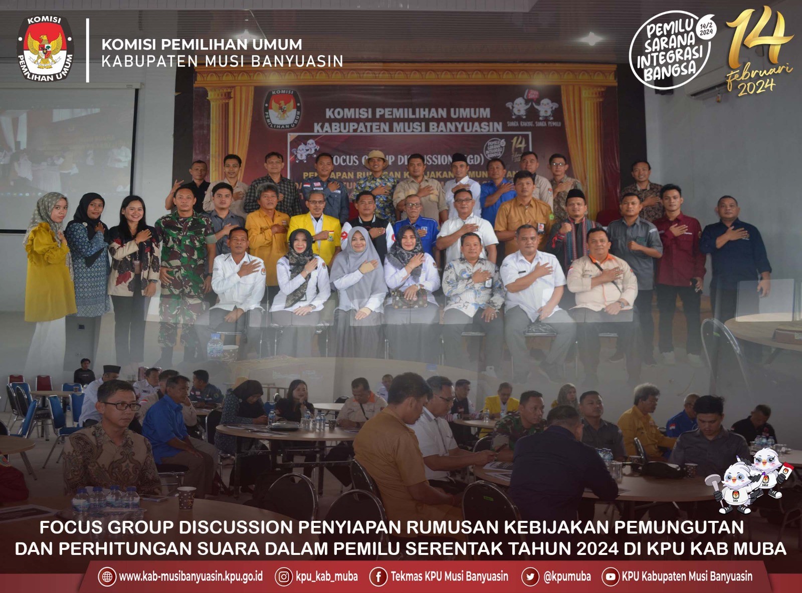 Kegiatan dibuka oleh Plh. Ketua KPU Kabupaten Musi Banyuasin Khoirul Anam Dalam sambutannya Anam menyampaikan KPU Republik Indonesia pada saat ini sedang merumuskan Draf PKPU tentang pemungutan dan penghitungan suara dalam Pemilihan Umum Tahun 2024. Anam juga menyampaikan bahwa FGD dilakukan dengan harapan ada masukkan, Kritik dan saran terhadap draf PKPU terkhusus Penyelenggara Pemilu, Peserta Pemilu, kemudian Pemntau Pemilu atau Pemerhati Pemilu kemudian Stakeholder terkait.