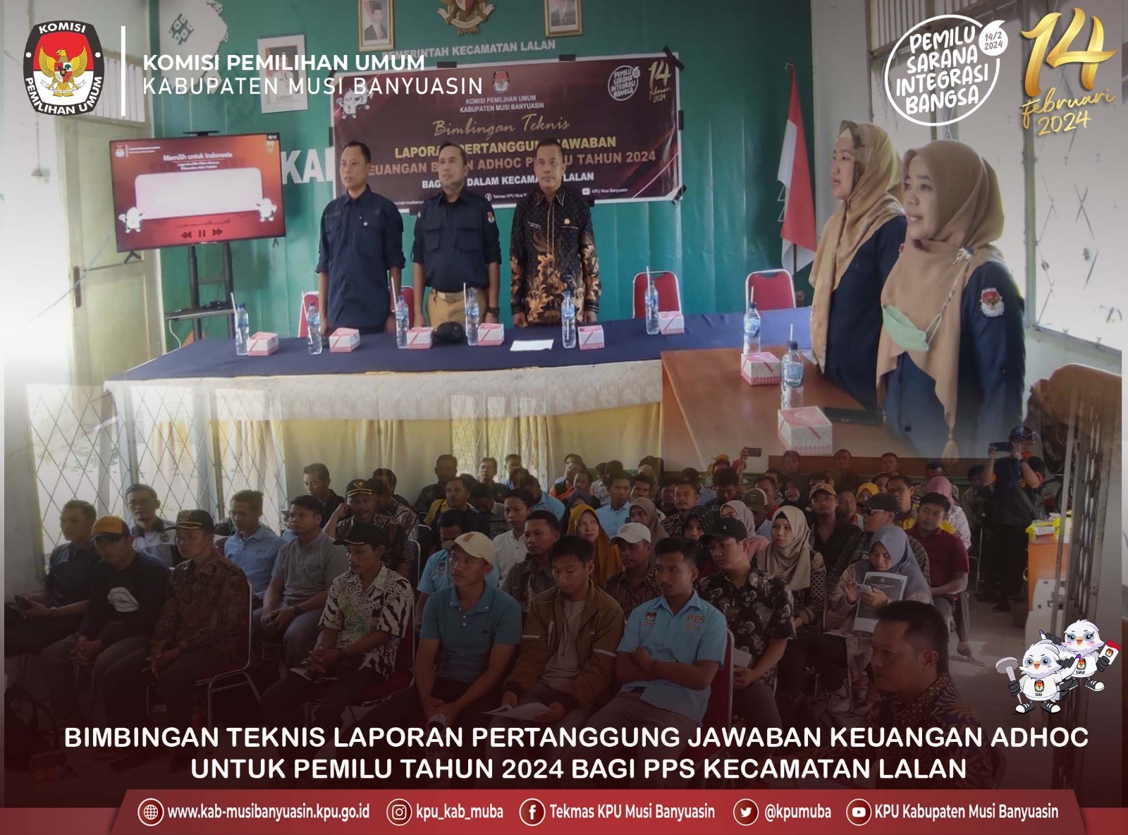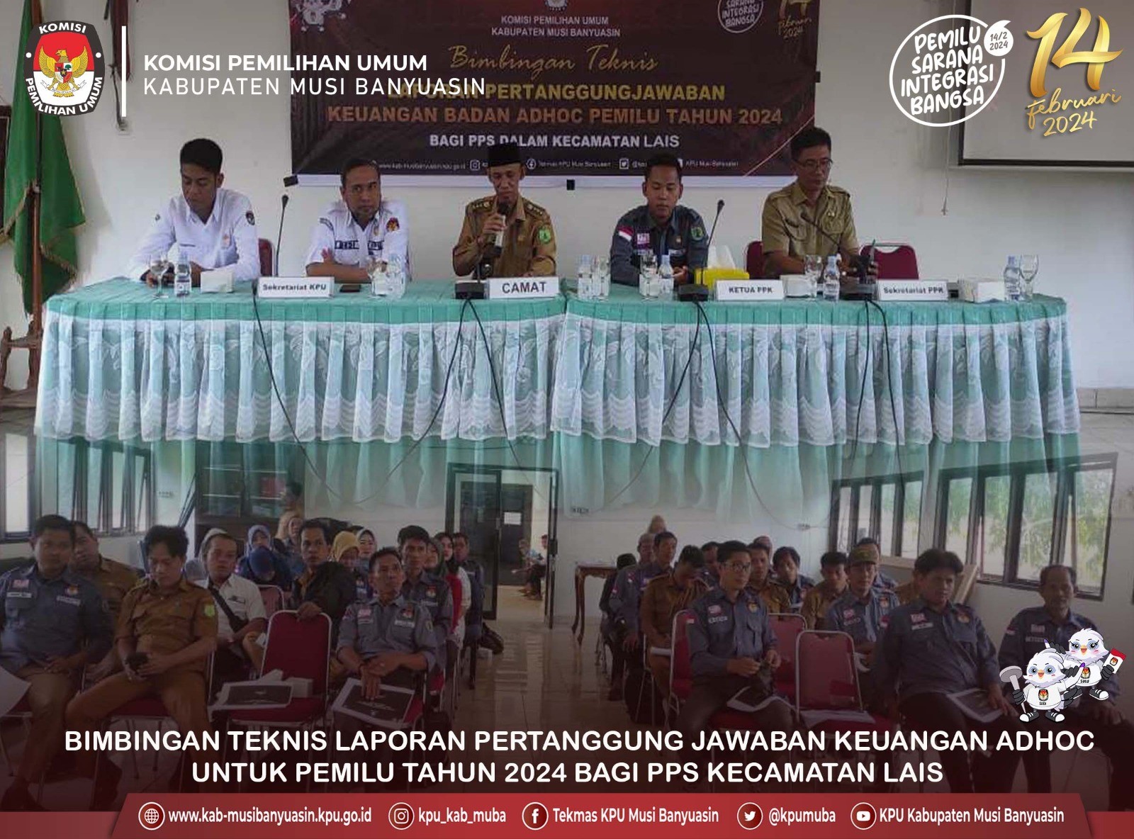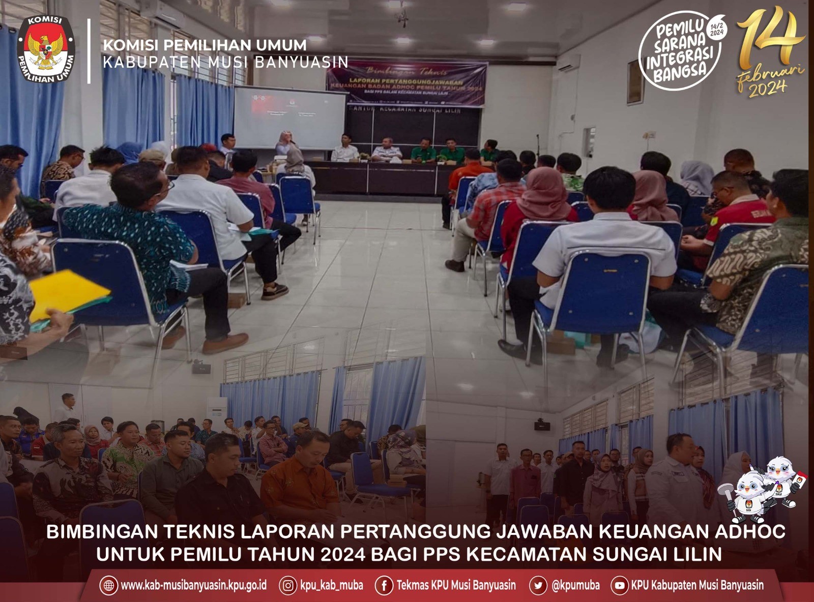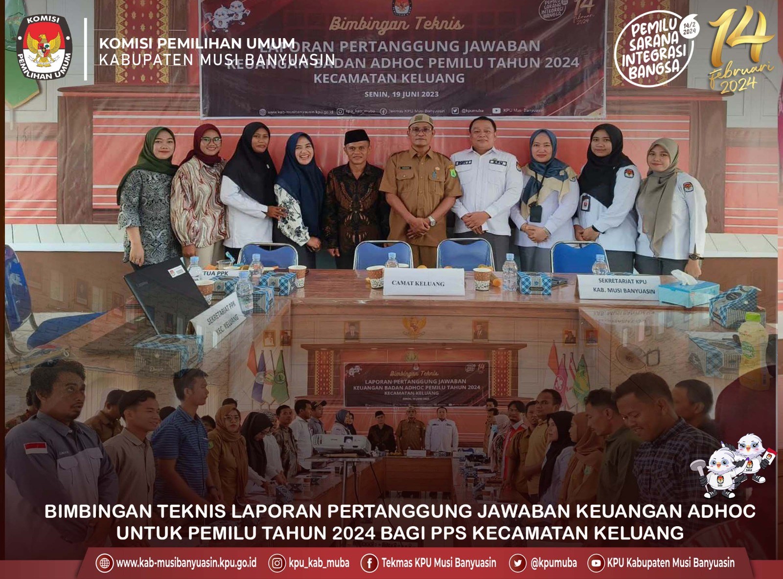 #TemanPemilih, Pejabat Pembuat Komitmen (PPK), Bendahara Pengeluaran, Pelaksana dan PPNPN KPU Kabupaten Musi Banyuasin menghadiri Bimbingan teknis pertanggungjawaban keuangan badan adhoc pemilu tahun 2024 tingkat PPS di Kecamatan Keluang. Sesuai Keputusan KPU RI Nomor 53 tahun 2023 tentang petunjuk teknis penyaluran dan pertanggungjawaban penggunaan dana tahapan pemilihan umum bagi badan adhoc penyelenggara pemilihan umum di lingkungan KPU. Acara di adakan di Aula Kantor Kecamatan Keluang diikuti Ketua PPS, Sekretariat PPS dan staf keuangan PPS. Senin, 19/6/2023.