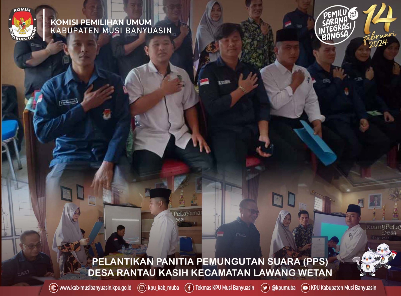 #TemanPemilih, Anggota KPU Kabupaten Musi Banyuasin Divisi Sosialisasi, pendidikan pemilih, partisipasi masyarakat dan SDM (Maryani) pada hari Rabu (14/6/2023) secara resmi melakukan Pelantikan dan Pengambilan Sumpah Jabatan kepada calon PAW PPS Desa Rantau Kasih Kecamatan Lawang Wetan bertempat di Kantor Kepala Desa Rantau Kasih. Maryani menyampaikan, kepada Anggota PPS yang telah dilantik agar dapat menjadi anggota yang berintegritas dan menjaga marwah demokrasi di Kab. Muba khususnya di Desa tempat bertugas. "Selamat menjalankan amanah dan tugas baru, anggota yang baru saja di lantik, kami harap mampu bekerja sama dengan PPS yang lama sehingga tahapan kita terus berlanjut dan bisa selesai dengan baik" Pungkasnya. Dalam Kesempatan tersebut juga hadir Kasubbag Hukum dan SDM KPU Kabupaten Musi Banyuasin, Staf PPNPN, PPK Kecamatan Lawang Wetan, Sekretariat dan PPS Desa Rantau Kasih #KPUMelayani #PemiluSerentak2024 ------------------------------------ Find Us On: Facebook: Tekmas KPU Musi Banyuasin Instagram: kpu_kab_muba Youtube: KPU Kabupaten Musi Banyuasin Twitter: @kpumuba Website: www.kab-musibanyuasin.kpu.go.id Alamat: Jl. Sekayu - Muara Teladan RT. 035 RW. 010 Kelurahan Balai Agung Kec. Sekayu - Musi Banyuasin