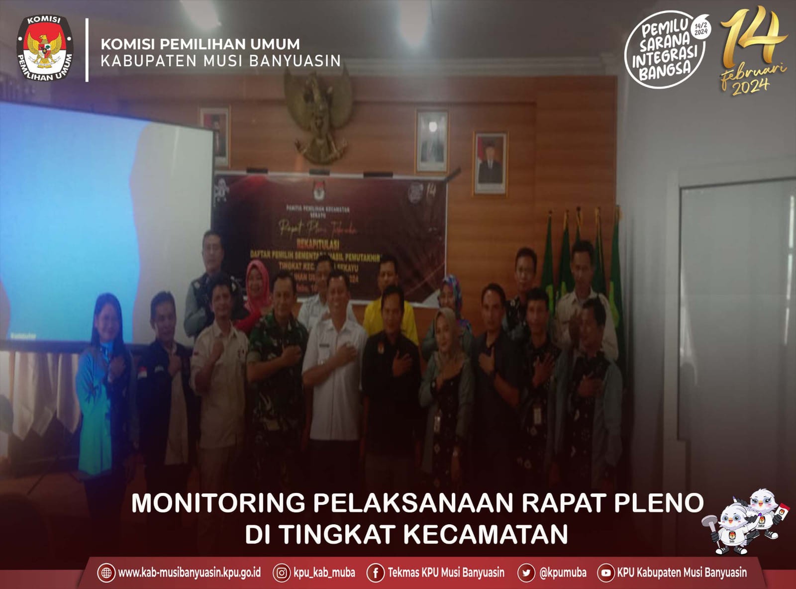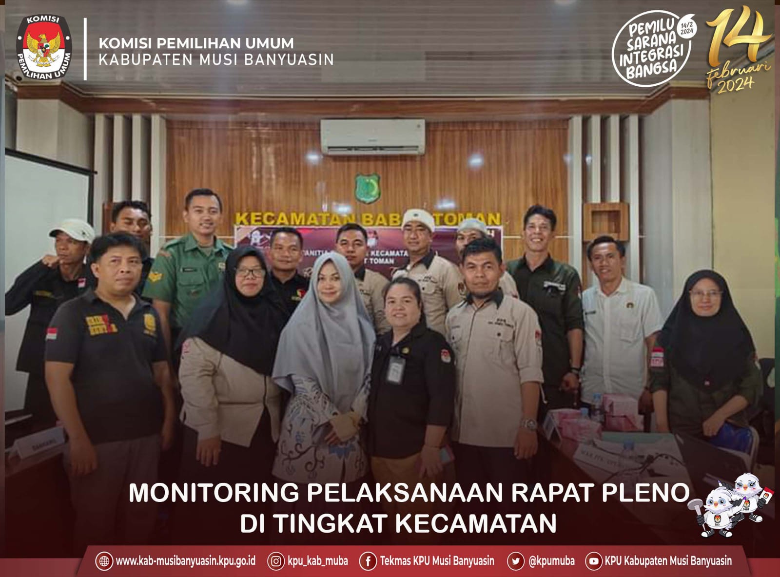 #TemanPemilih, Divisi Sosialisasi, pendidikan pemilih, partisipasi masyarakat dan SDM didapingi oleh Kasubbag Hukum dan SDM KPU Kabupaten Musi Banyuasin Melaksanakan Monitoring Pelaksanaan Rapat Pleno Terbuka Rekapitulasi Daftar Pemilih Sementara Hasil Perbaikan (DPSHP) pada Pemilihan Umum Tahun 2024 oleh PPK se Kecamatan Babat Toman.