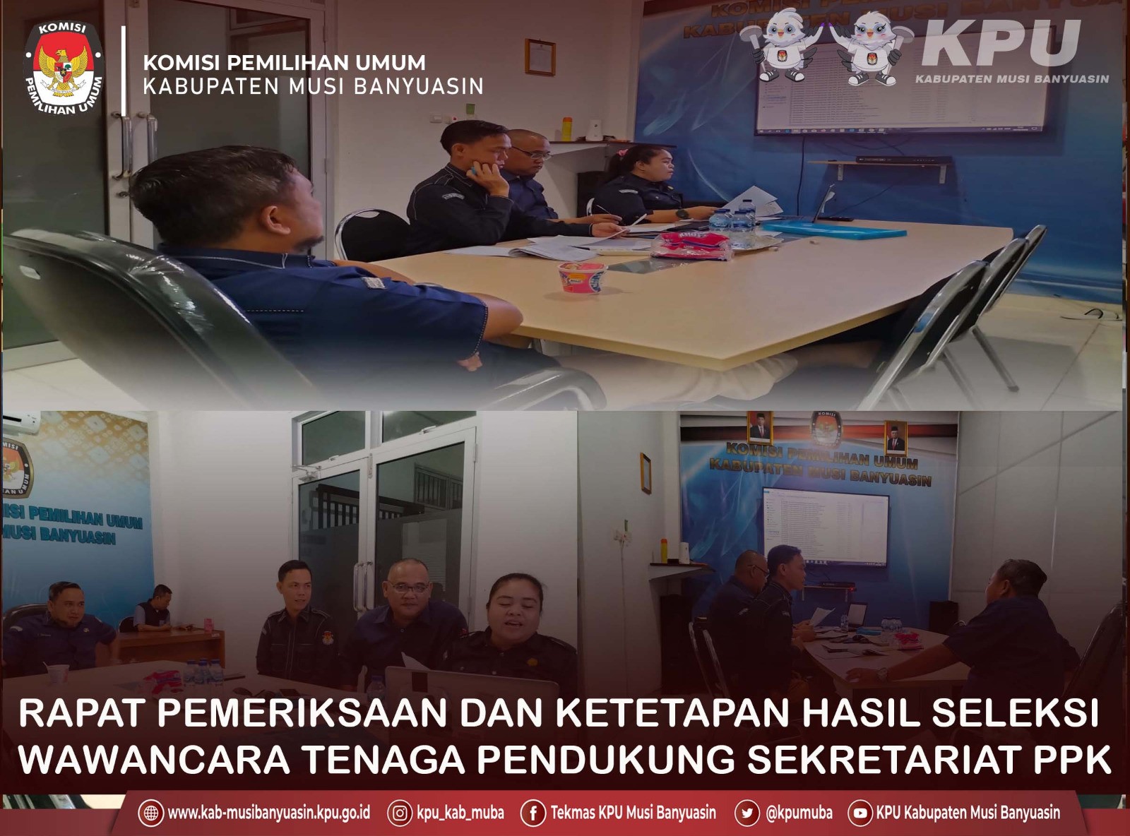 Dari hasil rapat tersebut akan diumumkan dan diambil menjadi 2 orang ditiap kecamatan untuk selanjutnya akan ditetapkan melalui surat keputusan sekretaris komisi pemilihan umum kabupaten musi banyuasin terhitung mulai tanggal 07 maret 2023 s.d 31 desember 2023 (10 bulan) / sesuai masa kerja tahapan PPK berlangsung.