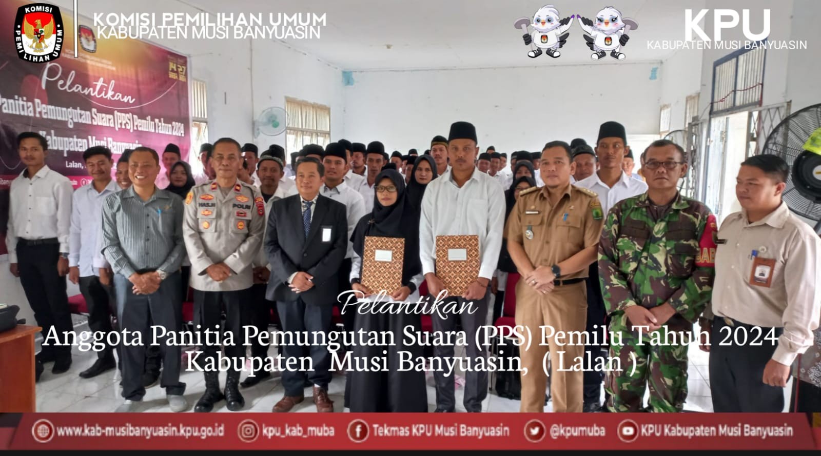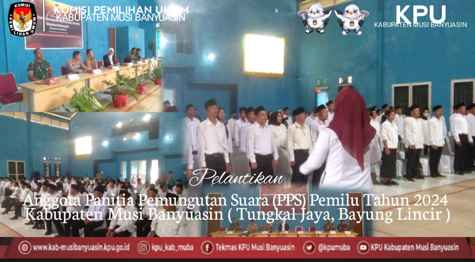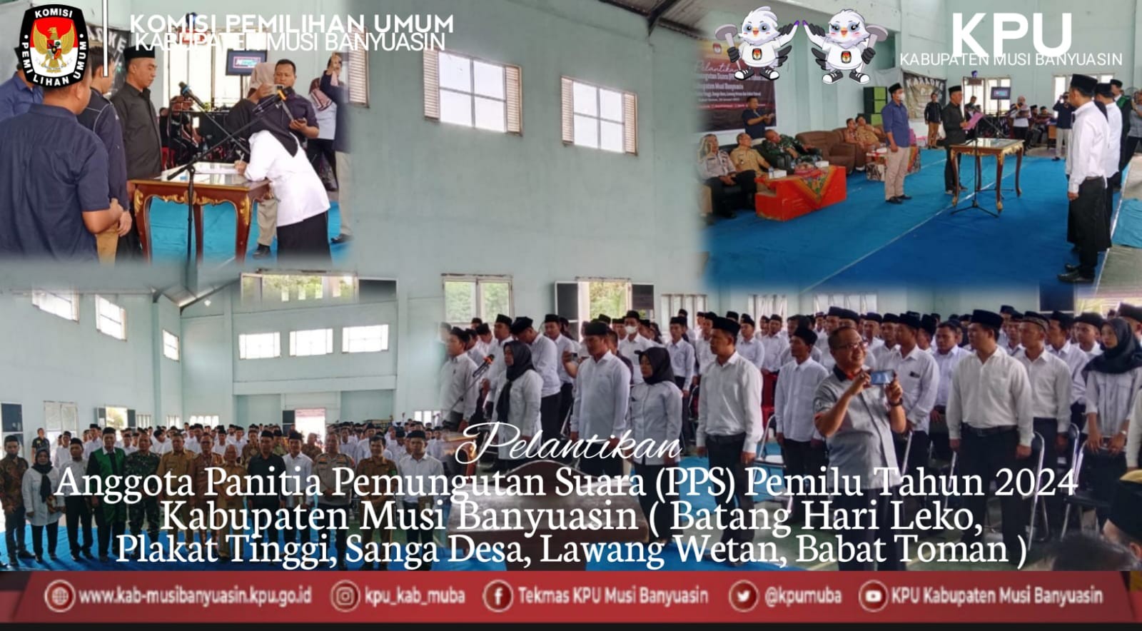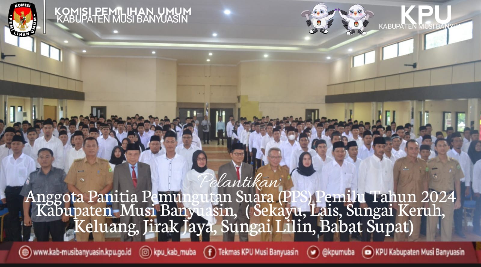 #TemanPemilih, KPU Kabupaten Musi Banyuasin melantik Panitia Pemungutan Suara (PPS) untuk Pemilu Tahun 2024 Zona 1 yaitu Kecamatan Sekayu, Sungai Keruh, Jirak Jaya, Lais, Keluang, Sungai Lilin dan Babat Supat di Gedung Dharma Wanita Musi Banyuasin pada hari ini, Selasa (24/01). Pelantikan dihadiri oleh PLT. Staf Ahli Bupati Bidang Keuangan Muhammad Ali, Stakeholder terkait yakni Bawaslu Musi Banyuasin, Forkopimda Musi Banyuasin, serta PPK Zona 1. Pelantikan dipimpin langsung oleh Ketua KPU Kabupaten Musi Banyuasin Yupizer,S.T. Dalam proses pelantikan ini PPS juga menyampaikan pakta integritas yang diwakili secara simbolis oleh PPS Desa Lumpatan II Neti Erlina, S.E.,M.Si. Kecamatan Sekayu.