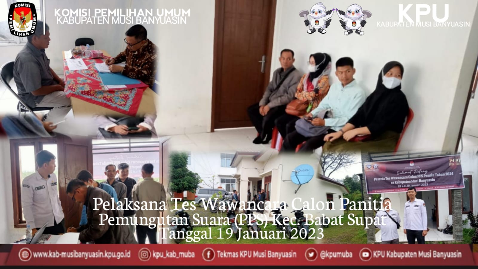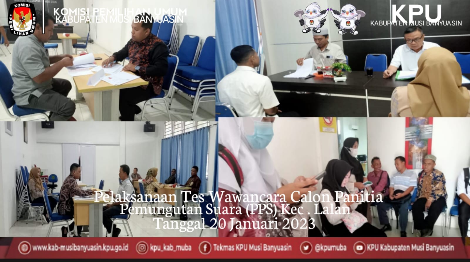 KPU Kabupaten Musi Banyuasin melaksanakan Tes Wawancara Calon Panitia Pemungutan Suara (PPS) Hari kedua yang dilaksanakan di Kantor KPU Kabupaten Musi Banyuasin.