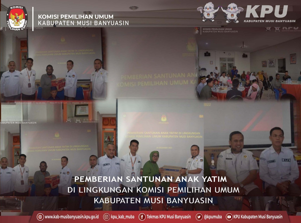 #TemanPemilih, Kamis 29 Desember 2022 KPU Kabupaten Musi Banyuasin melaksanakan kegiatan pemberian santunan kepada anak yatim piatu panti asuhan EL NUZA yang berlokasi di Kecamatan Sekayu Kabupaten Musi Banyuasin dan dilanjutkan dengan doa bersama. Santunan tersebut diserahkan langsung oleh Sekretaris KPU Kabupaten Musi Banyuasin (Dedi Irawan) bersama Kasubbbag di Kantor KPU Kabupaten Musi Banyuasin