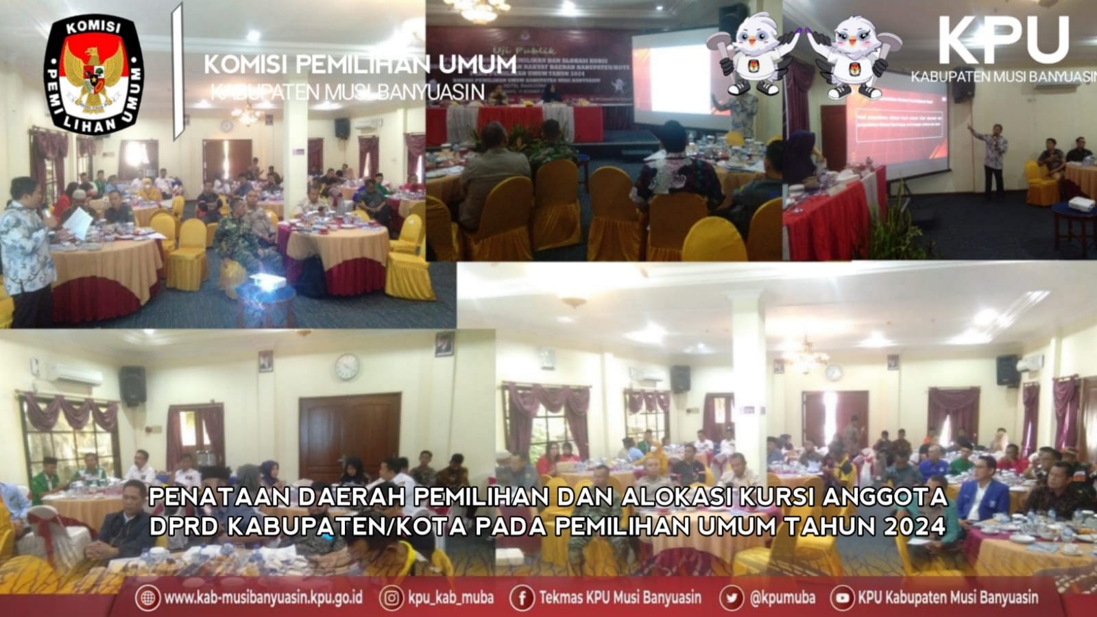 #TemanPemilih Kamis 15 Desember 2022, KPU Kabupaten Musi Banyuasin melaksanakan Uji Publik Penataan Daerah Pemilihan dan Alokasi Kursi DPRD Kabupaten Musi Banyuasin untuk Pemilu Tahun 2024 di Ballroom Hotel Ranggonang Sekayu.