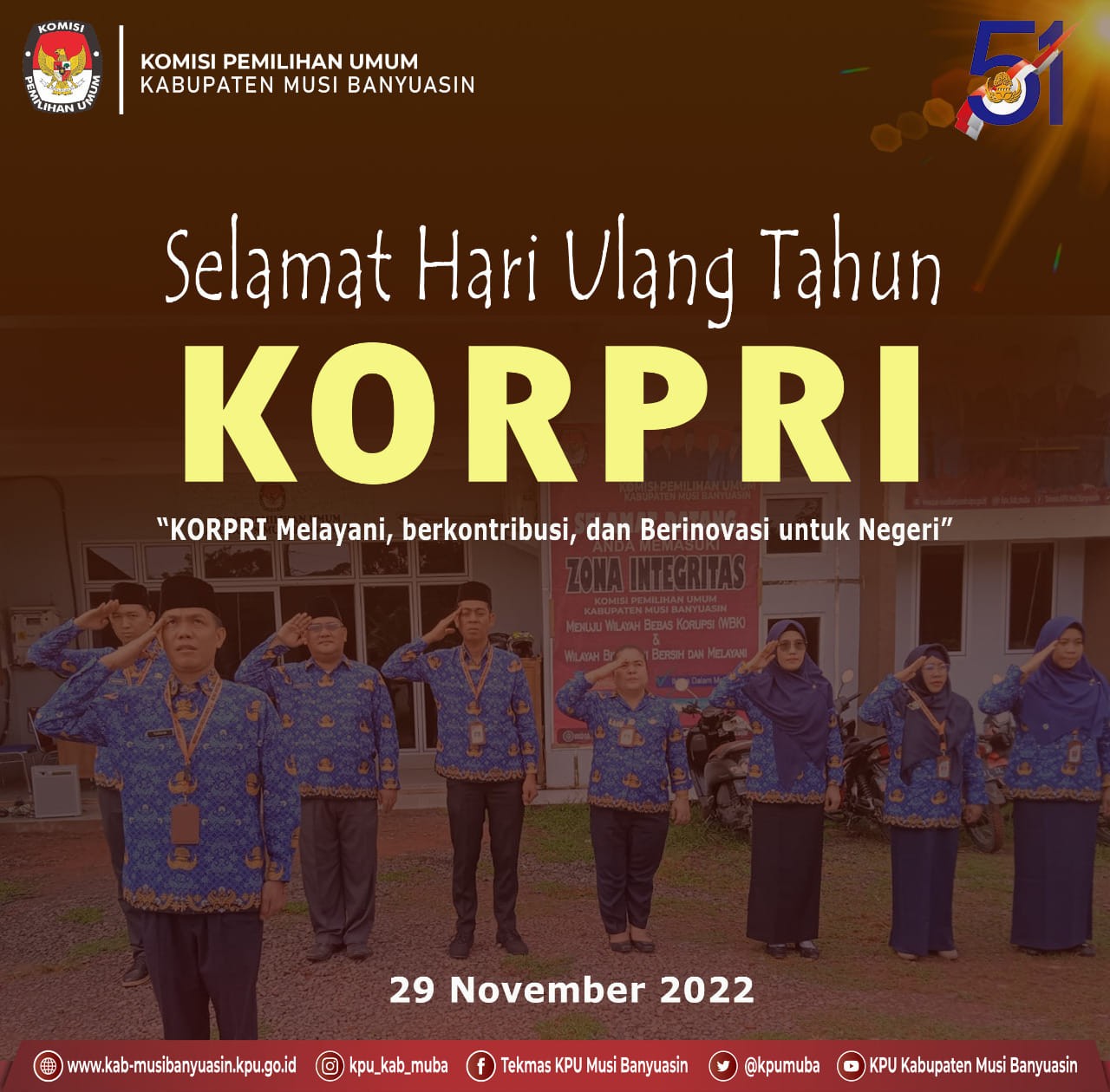 #TemanPemilih, segenap jajaran KPU Kabupaten Musi Banyuasin mengucapkan Selamat Hari Ulang Tahun ke -51 Korps Pegawai Republik Indonesia (KORPRI).