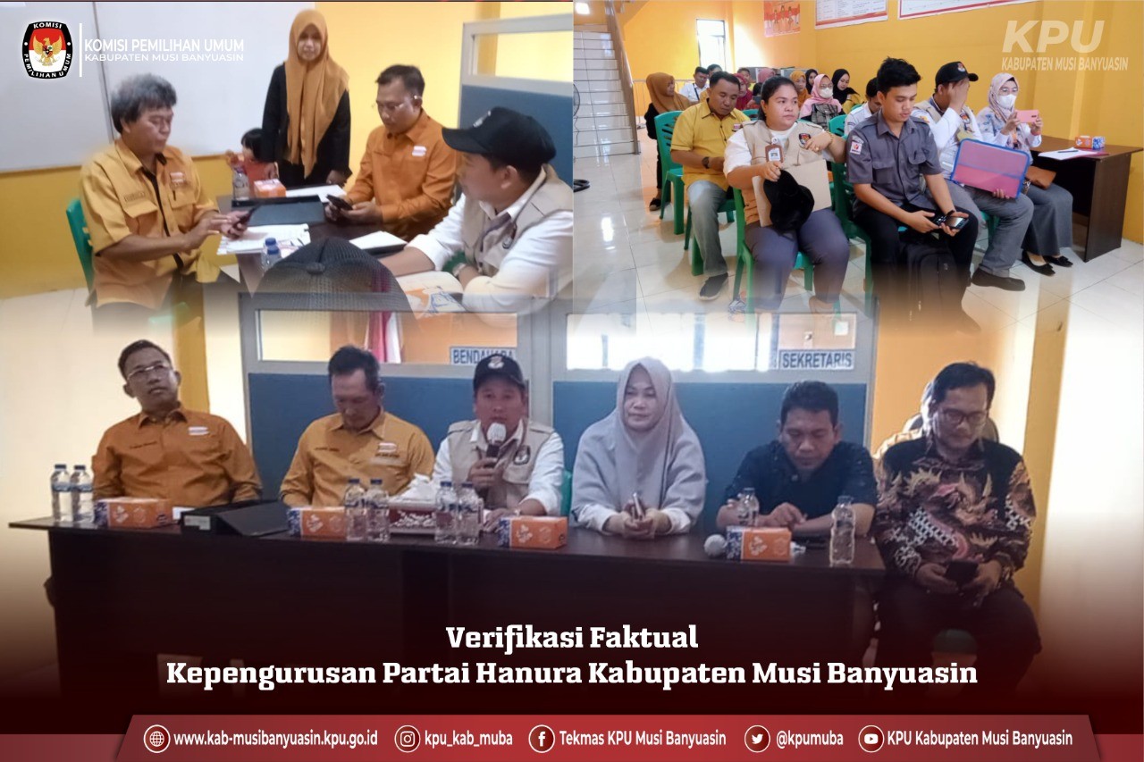 Tim Verifikator diterima oleh Ketua DPD Partai Hanura, Sekretaris dan Bendahara beserta Jajaran Pengurus Partai Hanura, turut hadir Bawaslu Kabupaten Musi Banyuasin.