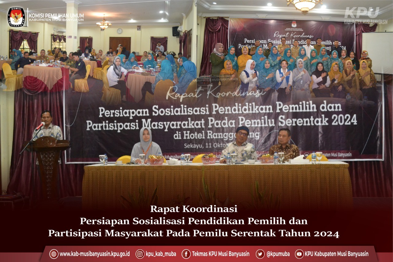 #TemanPemilih, KPU Kabupaten Musi Banyuasin mengadakan Rapat Koordinasi Persiapan Sosialisasi Pendidikan Pemilih dan Partisipasi Masyarakat Pada Pemilu Serentak Tahun 2024, bertempat di Hotel Ranggonang Kabupaten Musi Banyuasin, Selasa (11/10/2022)