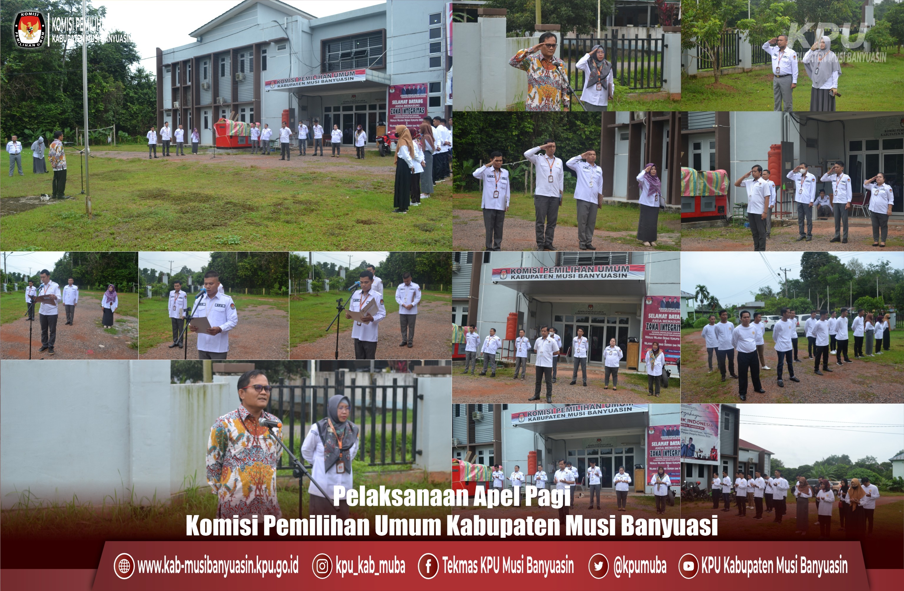 #TemanPemilih, Apel pagi setiap hari Senin, rutin dilaksanakan di lingkungan KPU Kabupaten Kabupaten Musi Banyuasin, Senin (19/09/2022). Pelaksanaan Apel rutin di halaman Kantor KPU Kabupaten Musi Banyuasin pada pukul 08.00 WIB dimulai dengan mendengarkan lagu Indonesia Raya, pembacaan UUD 1945, pembacaan Naskah Pancasila serta pembacaan Panca Prasetya KORPRI ditutup dengan Pembacaan Doa. Pembina Apel pada kesempatan kali ini Ketua KPU Kabupaten Musi Banyuasin (Yupizer), dalam amanatnya Yupizer mengajak seluruh peserta apel untuk terus melayani masyarakat dalam bidang Kepemiluan selain itu Yupizer menghimbau pula agar seluruh peserta apel untuk terus meningkatkan pemahaman di bidang Kepemiluan khususnya mengenai setiap peraturan yang berkaitan dengan penyelenggaran pemilu diakhir amanatnya Yupizer mengingatkan agar seluruh peserta apel untuk tetap menjaga kesehatan diri masing-masing. Pelaksanaan Apel tersebut, dihadiri oleh, Divisi Sosialisasi, Pendidikan Pemilih, Partisipasi masyarakat dan SDM, Sekretaris, Kasubbag serta seluruh Staf Sekretariat, PPNPN Komisi Pemilihan Umum Kabupaten Musi Banyuasin. #KPUMelayani #PemiluSerentak2024