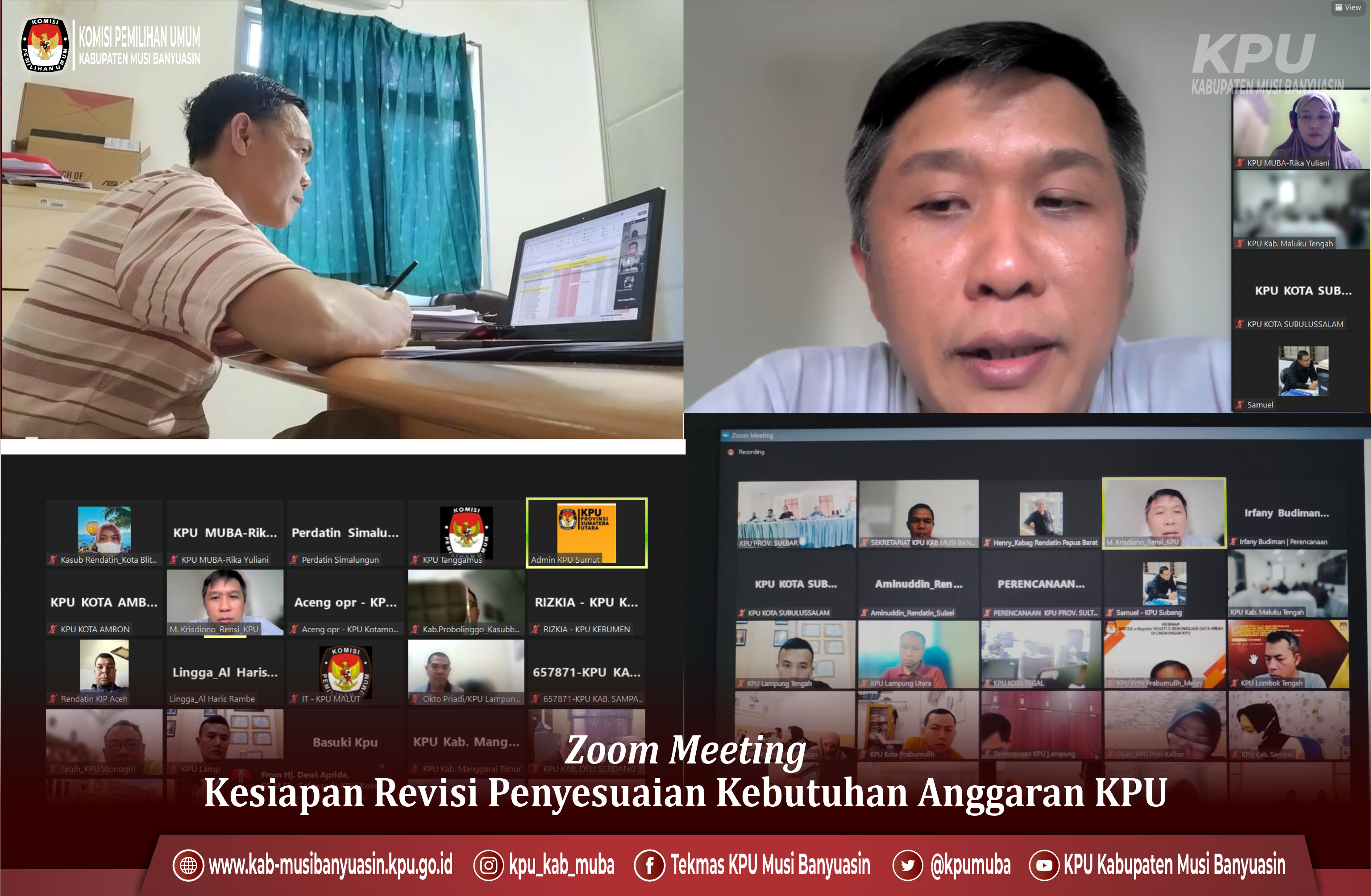 Kegiatan diikuti oleh Sekretaris KPU Kab Musi Banyuasin, Kasubbag Hukum dan SDM, dan Staf Pelaksana. Bertempat di Ruang Rapat Ulak Lia KPU Kabupaten Musi Banyuasin. Kegiatan diadakan oleh KPU Republik Indonesia secara daring via zoom meeting, kegiatan dimulai pukul 09.00 WIB sd selesai. Rabu, (7/9/22).