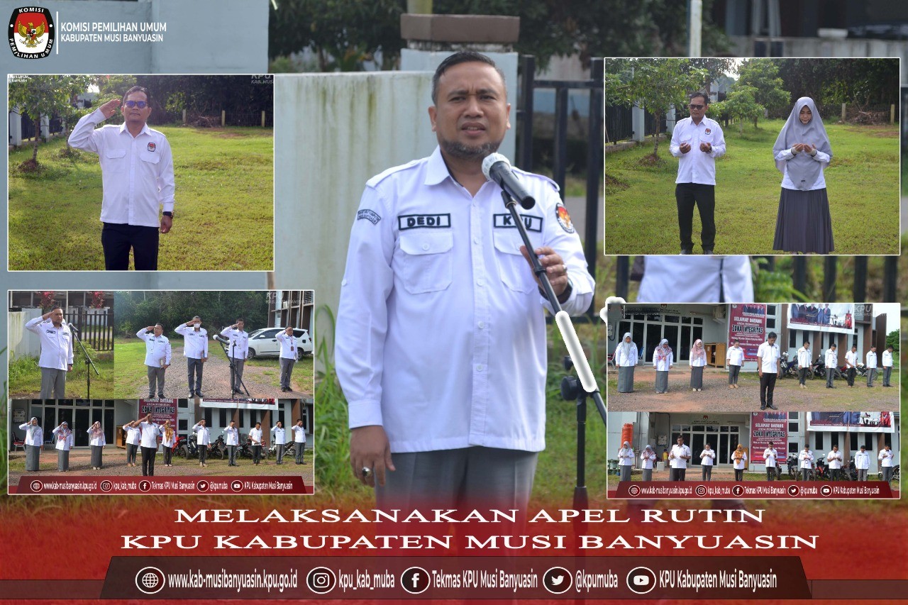 #TemanPemilih, Apel pagi setiap hari Senin, rutin dilaksanakan di lingkungan KPU Kabupaten Kabupaten Musi Banyuasin, Senin (15/08/2022). Pelaksanaan Apel rutin di halaman Kantor KPU Kabupaten Musi Banyuasin pada pukul 08.00 WIB dimulai dengan mendengarkan lagu Indonesia Raya, pembacaan UUD 1945, pembacaan Naskah Pancasila serta pembacaan Panca Prasetya KORPRI ditutup dengan Pembacaan Doa. Pembina Apel pada kesempatan kali ini Sekretaris KPU Kabupaten Musi Banyuasin ( Dedi Irawan). Dalam amanatnya Dedi menyampaikan agar jajaran KPU Kabupaten Musi Banyuasin dalam melaksanakan tugas selalu menjaga kekompakan, kebersamaan dan kesehatan. Menunjukkan kinerja terbaik , memiliki kebanggan terhadap lembaga. Pelaksanaan Apel tersebut, dihadiri oleh Ketua KPU, Divisi Sosialisasi, Pendidikan Pemilih, Partisipasi Masyarakat, Sekretaris, Kasubbag serta seluruh Staf Sekretariat, PPNPN Komisi Pemilihan Umum Kabupaten Musi Banyuasin. #KPUMelayani #PemiluSerentak2024
