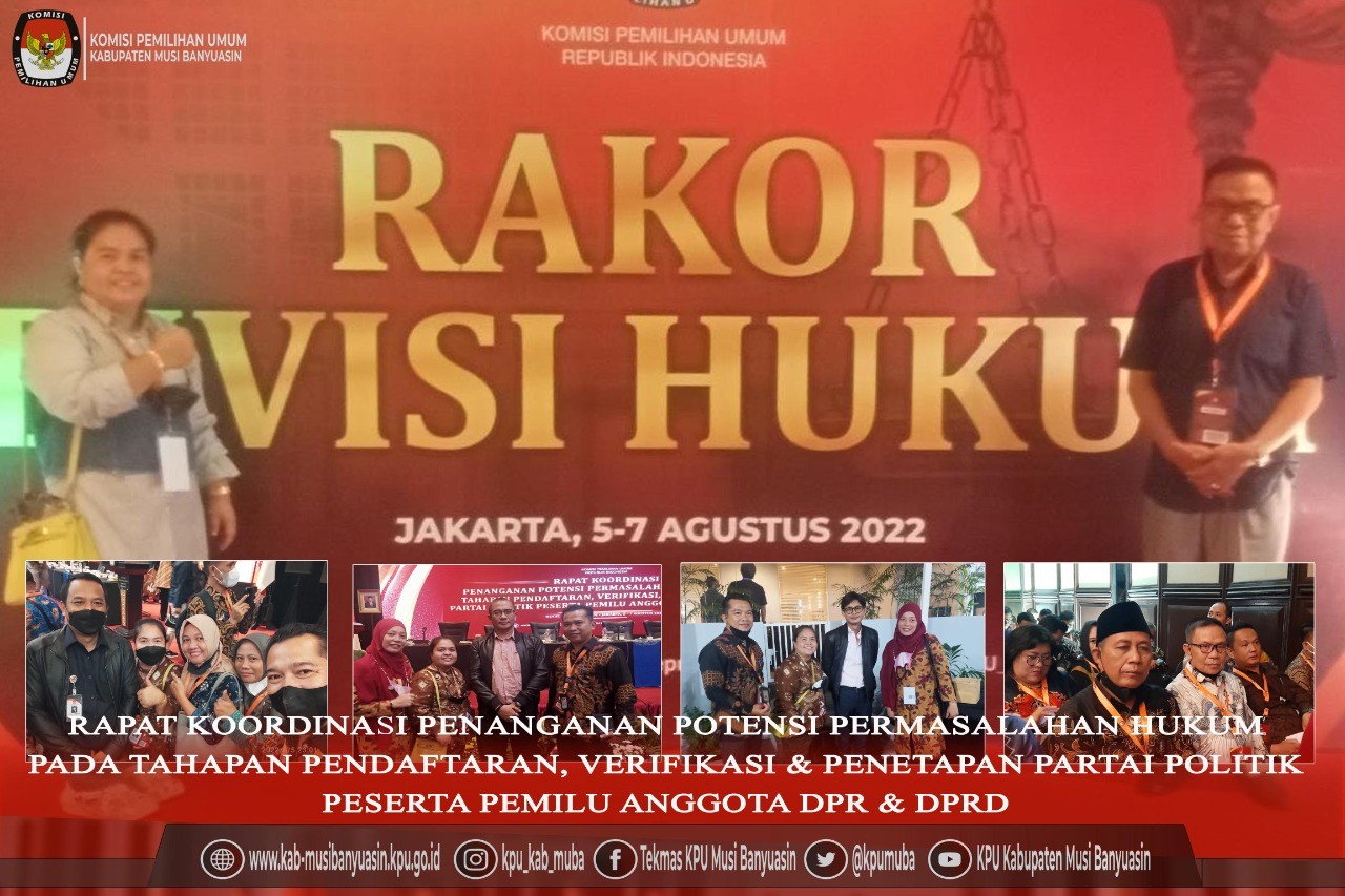 #TemanPemilih, Komisi Pemilihan Umum Kabupaten Musi Banyuasin melalui Anggota pada Divisi Hukum (Maryadi Mustafa) di dampingi Kasubbag Hukum (Vera Tri Agustina) pada Sekretariat turut menghadiri Rapat Koordinasi Penanganan Potensi Permasalahan Hukum Pada Tahapan Pendaftaran, Verifikasi, Dan Penetapan Partai Politik Peserta Pemilu Anggota DPR Dan DPRD di Hotel Mercure Ancol ~ Jakarta dari Tanggal 5-7 Agustus 2022. Acara Rapat koordinasi dibuka oleh ketua KPU RI Hasyim Asy'ari. Ketua KPU RI memberikan arahan bahwa divisi hukum pada setiap tahapan pasti ada potensi permasalahan hukumnya. Sehingga salah satunya adanya kepastian hukum dan karakter bersifat nasional. Jadi, mengikuti segala aturan yang mengaturnya. Apabila kab/kota mengubah standar dari KPU RI Maka KPU kab/kota dinonaktifkan dan diambil alih oleh KPU Provinsi/KIP Aceh. Ketua KPU RI juga memberikan mengingatkan UU no. 7/2017 tentang tugas dan wewenang KPU provisi/KIP kab/kota untuk mengkontrol tugas dan beban kerja sesuai dengan tugas dan wewenangannya. Dan baca juga lampiran-lampirannya. Dan setiap aturan mohon dipelajari karena dari aturan yg dikeluarkanlah menjadi aturan untuk dipakai untuk mengambil kebijakan. Pada tahapan pendaftaran, verifikasi dan penetapan untuk kategori 1 (partai yang termasuk dalam Parlement trisold), kategori 2 (partai yang termasuk pemilu 2019 tetapi tidak dalam parlement trisold) dan kotegori 3 (partai politik yang baru) mempunyai kesetaraan yang sama ketika ditemukan potensi kegandaan keanggotaan/kepengurusan partai politik. Untuk dilakukan klarifikasi pada verifikasi faktual. Berikutnya sesi pengarahan pimpinan oleh Anggota KPU RI dan Sekjen KPU RI. Arahan selanjutnya oleh ibu Betty, bahwa operator sipol harus bertanggung jawab pada akun aplikasinya, dan harus berhati-hati dan teliti Dan akan nantinya disupervisi oleh KPU Provisi/KIP aceh. Arahan selanjutnya oleh bpk Yulianto Sudrajat (divisi perencanaan) bahwa bedasarkan ketua kpu sampaikan diharapkan tahapan berjalan dgn baik serta kegiatan tahapan berjalan dgn baik juga. Saya juga berkosultasi dgn sekjen bahwa dana verpol sesuai dengan harapan. Pak sekjen juga berkomitmen menkonsolidasikan menkomitmenkan pada tahapan verpol ini, sehingga potensi masalah diharapkan kegiatan didokumentasikan setiap tahapan. Arahan bpk. Agust Melaz memberikan arahan mengenai data dan informasi, sehingga divisi hukum diharapkan untuk mengadakan rakor untuk divisi sdm, divisi perencanaan serta divisi keuangan. Apa yg didapatkan informasikan pada rakor-rakor setiap divisi harus menginformasikan secara hirarki sehingga kedepan informasi yg dikeluarkan sama satu suara. Arahan bpk. Afifudin (divisi hukum) bahwa setiap kebijakan kita itu kolektif kolegial sehingga apabila kebijakan yang benar dan sukses itu adalah bersama, ketika kesalahan itu bersama. Bukan tanggung jawab divisi tertentu. Maka pentingnya kita membekali bapak ibu divisi-divisi senjata untuk bagaimana potensi permasalahan kita bisa atasi, sehingga notulensi, adminstrasi siap kita hadapi ketika mengalami dampak pada pemilu/pemilihan. Divisi hukum dan pengawasan, ini penting untuk tahu mengenai potensi masalah pada setiap tahapan, sehingga setiap divisi diharapkan jangan membuat jurus sediri dan harus taat sesuai aturan dan turunannya. Divisi hukum dan pengawasan siap mengatasi problem setiap tahapan,sehingga rakor ini sebagai forum menyolitkan setiap divisi , kabag dan kasubbag untuk dapat mensukseskan pemilu/pemilihan zero konflik. Sabtu, 6/8/22. #KPUMelayani #PemiluSerentak2024