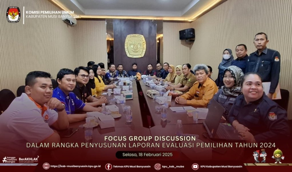 #TemanPemilih, Ketua KPU Muba memimpin Focus Group Discussion dalam rangka penyusunan laporan evaluasi pemilihan Tahun 2024 bertempat di Ruang Rapat Kuyung Kupek.
