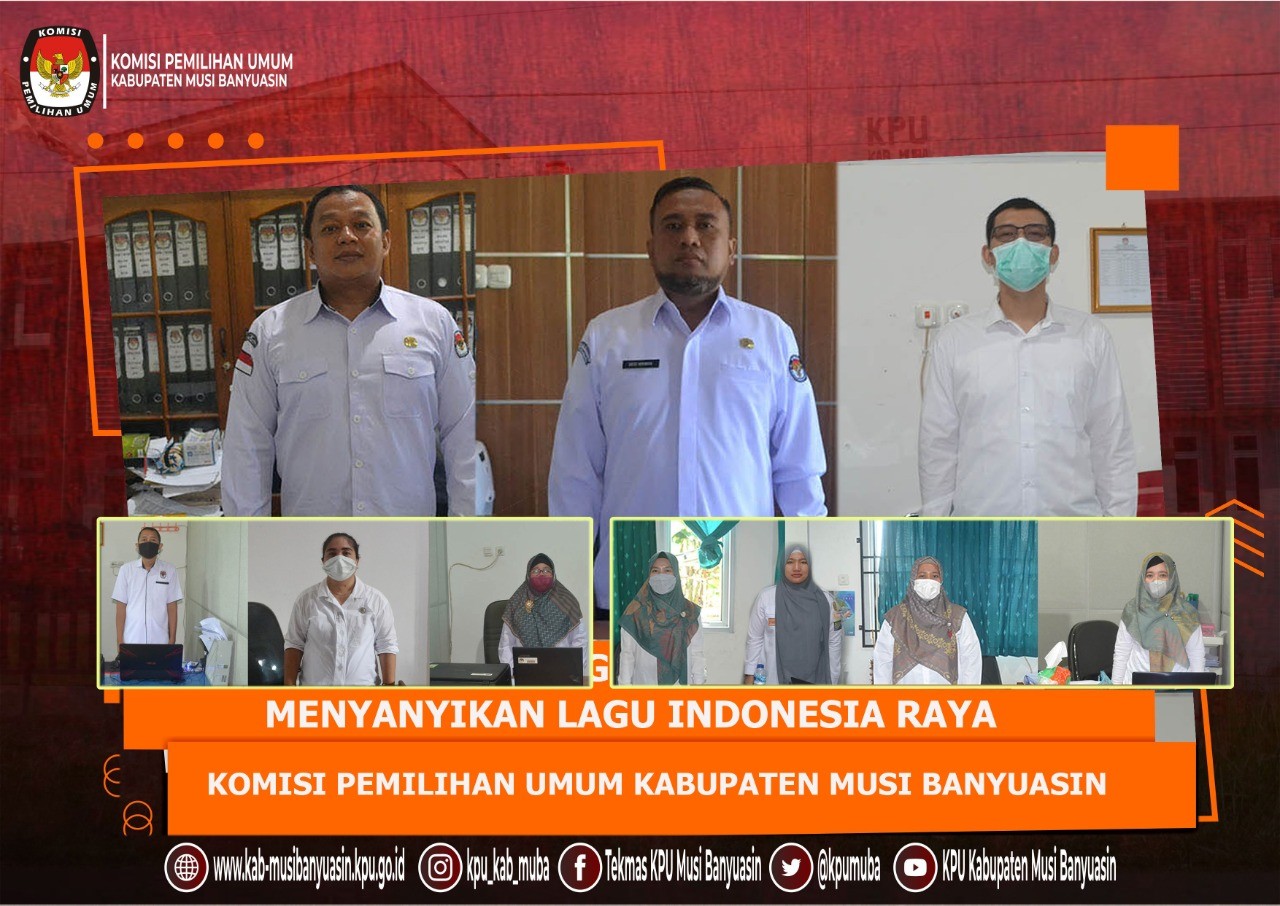 #TemanPemilih, Dalam rangka memelihara dan meningkatkan rasa kebangsaan dan cinta tanah air, pengabdian terhadap negara dan rakyat indonesia serta ketaatan terhadap ideologi Pancasila dan Undang-Undang Dasar Republik Indonesia Tahun 1945, KPU Kabupaten Musi Banyuasin melaksanakan kegiatan mendengarkan Lagu Kebangsaan Indonesia Raya pada hari Selasa dan Kamis di setiap minggu pada pukul 10.00 Pagi, Kamis, (12/5/22).