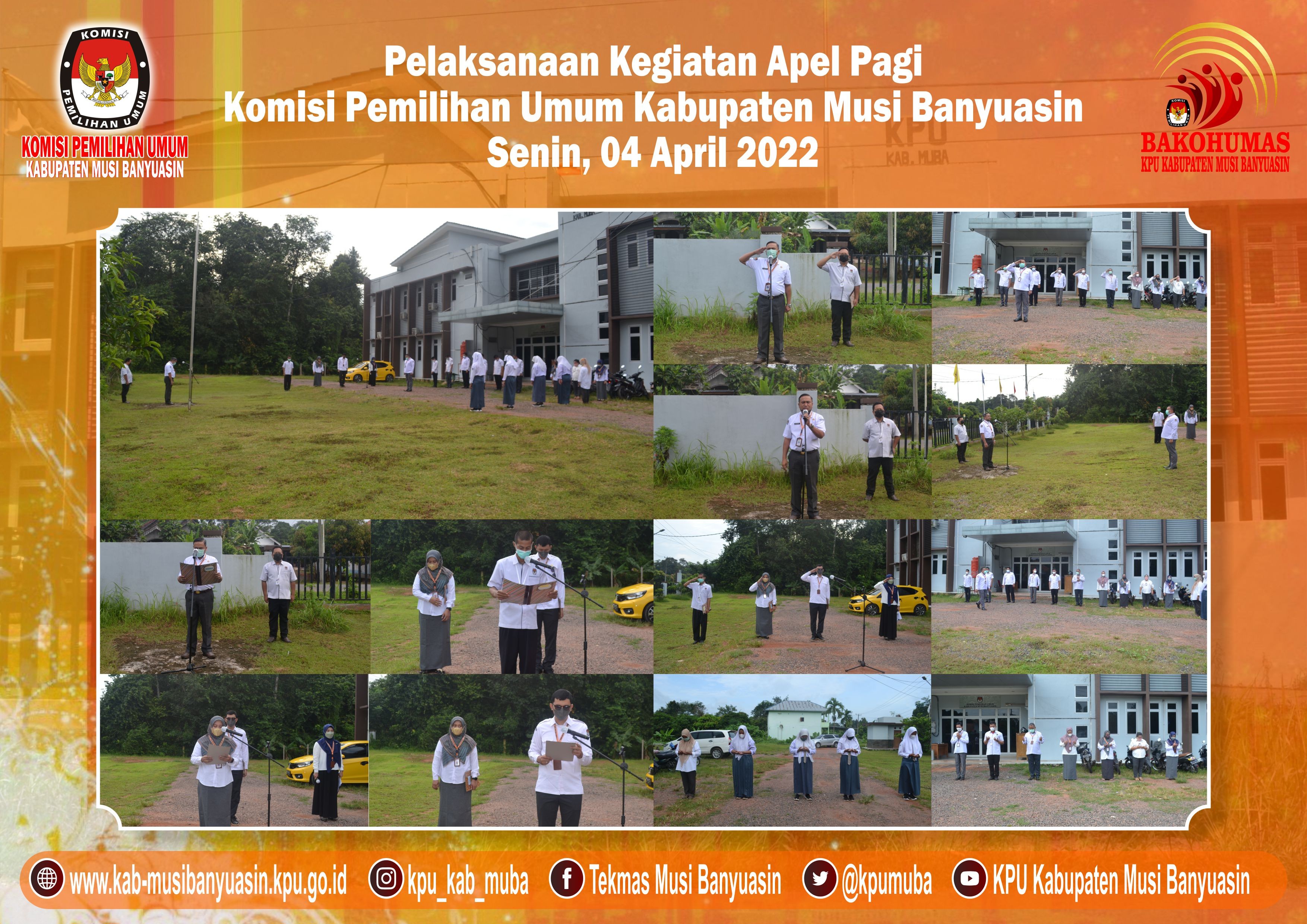 #TemanPemilih, Segenap Jajaran KPU Kabupaten Musi Banyuasin melaksanakan Rutinitas Apel Pagi hari Senin, 4/4/2022. Bertempat di halaman Kantor KPU Kabupaten Musi Banyuasin.