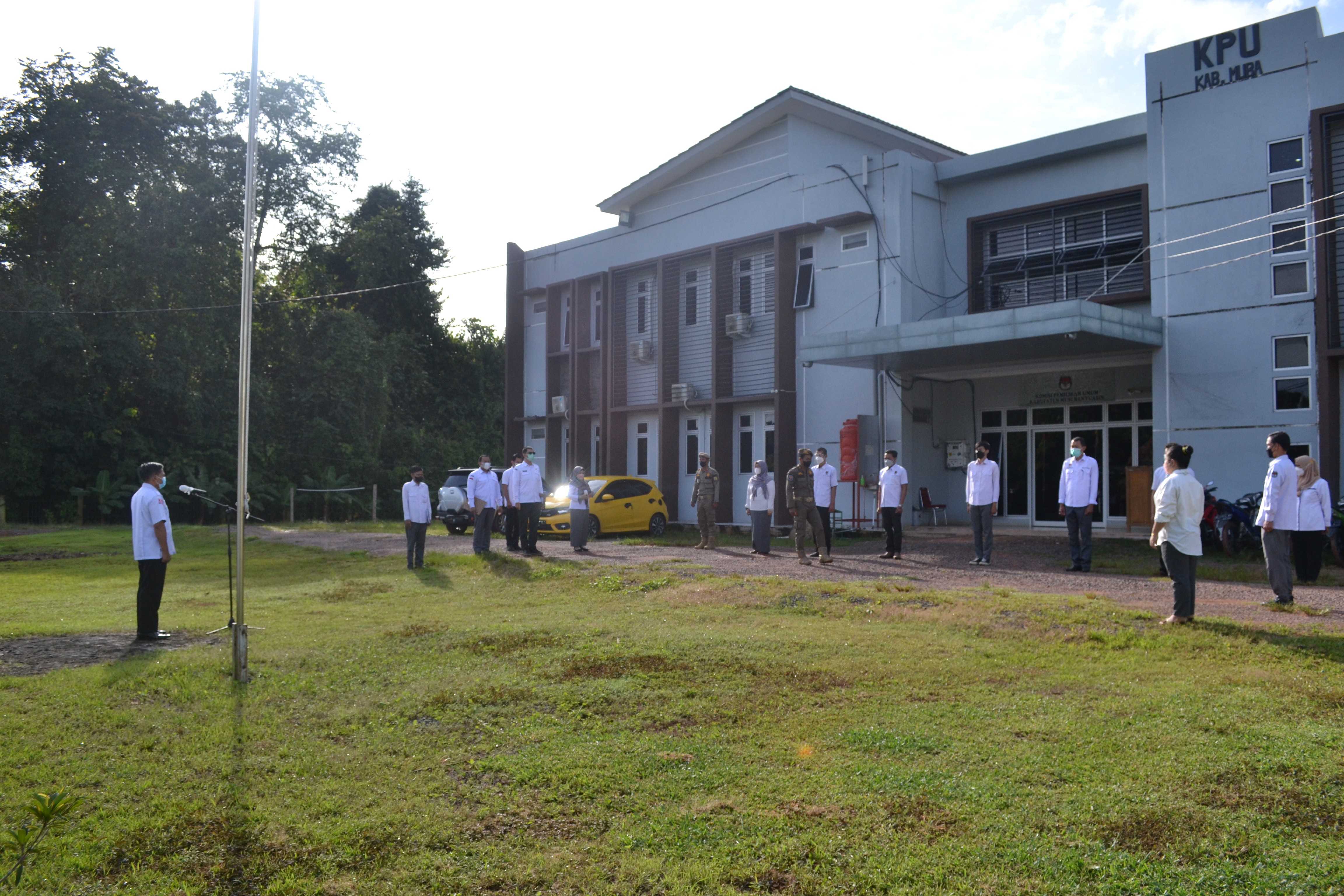 #TemanPemilih, Dalam rangka memelihara dan meningkatkan rasa kebangsaan dan cinta tanah air, pengabdian terhadap negara dan rakyat indonesia serta ketaatan terhadap ideologi Pancasila dan Undang-Undang Dasar Republik Indonesia Tahun 1945, KPU Kabupaten Musi Banyuasin melaksanakan kegiatan Membacakan Naskah Pancasila pada hari Rabu dan Jum'at di setiap minggu pada pukul 10.00 Pagi, Jumat(17/12).