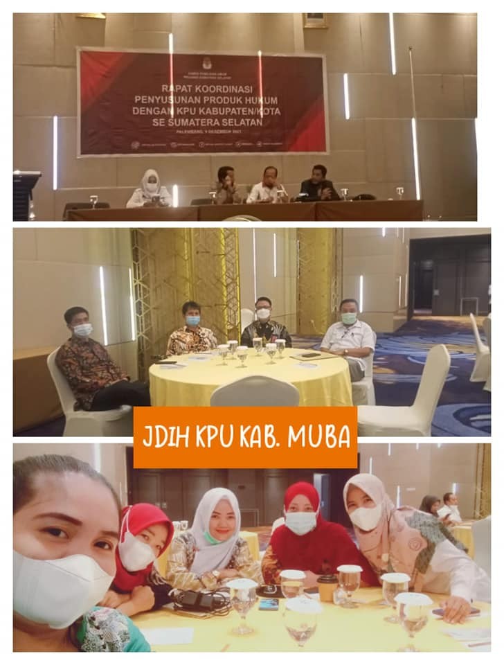 #TemanPemilih, Divisi Hukum dan Pengawasan (Ir. Maryadi Mustafa), Sub koordinator Penata Kelola Pemilu/Kasubbag Hukum (Vera Tri Aguatina, SH) Menghadiri Undangan dari KPU Provinsi Sumatera Selatan dalam Rangka Rapat Koordinasi Produk Hukum dengan KPU Kabupaten/Kota Se Sumatera Selatan bertempat di Hotel Aits Palembang.