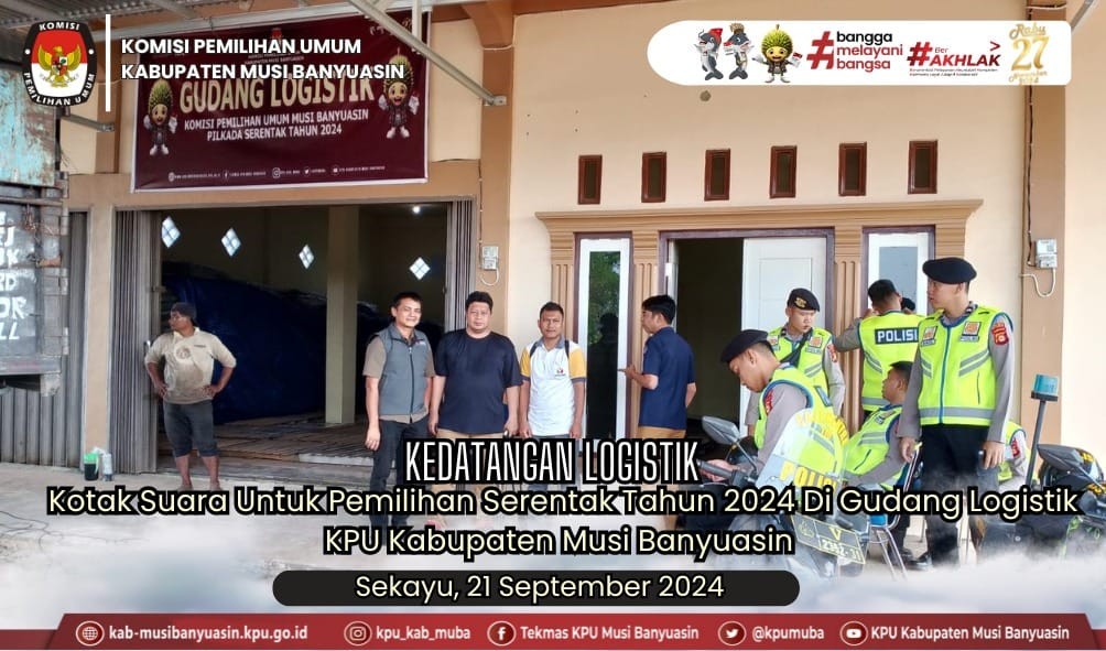 #TemanPemilih, Kedatangan Logistik Kotak Suara Pemilihan Serentak Tahun 2024 Di Gudang Logistik KPU Kabupaten Musi Banyuasin Sabtu, 21 September 2024. Kedatangan Logistik tersebut Disaksikan Oleh Perwakilan Dari Kejaksaan Negeri Musi Banyuasin, Polres Musi Banyuasin, Dandim 0401, Kesbangpol Kabupaten Musi Banyuasin dan Bawaslu Kabupaten Musi Banyuasin.