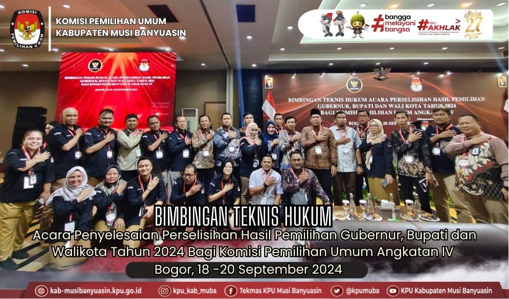 #TemanPemilih, KPU Kabupaten Musi Banyuasin Menghadiri Bimbingan Teknis Hukum Acara Penyelesaian Perselisihan Hasil Pemilihan Gubernur dan Wakil Gubernur, Bupati dan Wakil Bupati serta Walikota dan Wakil Walikota Tahun 2024 Bagi Komisi Pemilihan Umum Angkatan IV DI Bogor, 18-20 September 2024