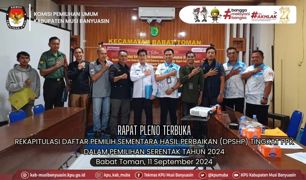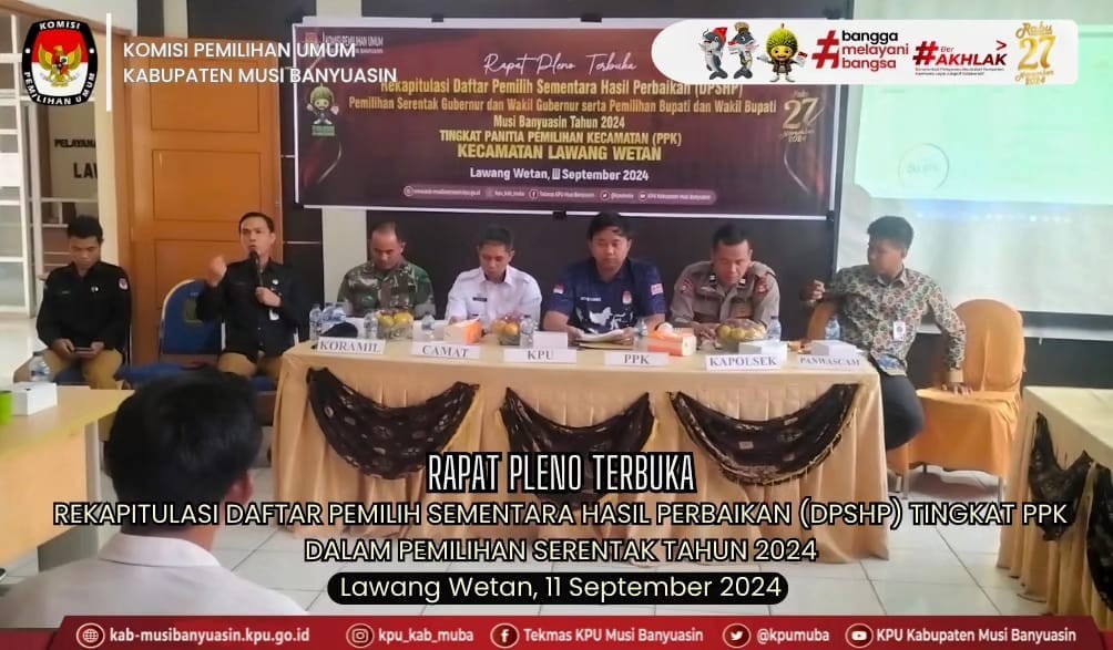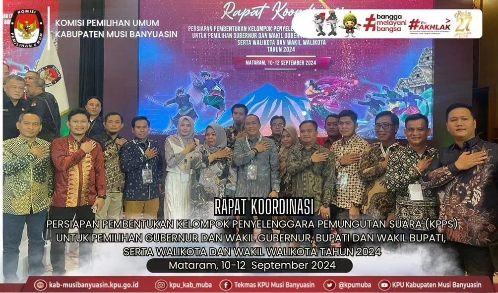 #TemanPemilih, KPU Kabupaten Musi Banyuasin Menghadiri Undangan Rapat Koordinasi Persiapan Pembentukan Kelompok Penyelenggara Pemungutan Suara (KPPS) Untuk Pemilihan Gubernur dan Wakil Gubernur, Bupati dan Wakil Bupati, serta Walikota dan Wakil Walikota Tahun 2024