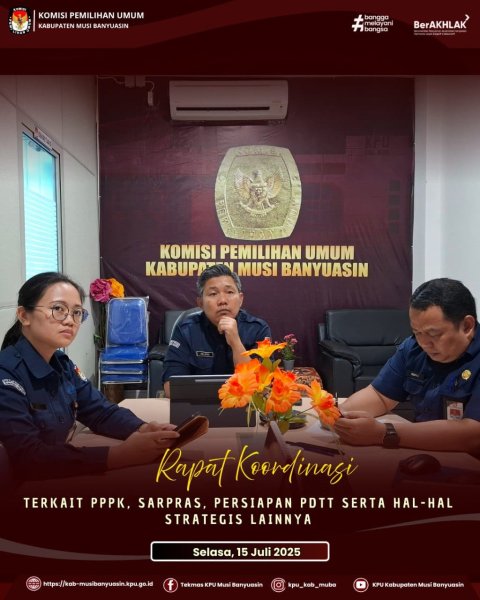 Rapat tersebut dihadiri oleh seluruh Jajaran Sekretariat KPU Kabupaten Musi Banyuasin.