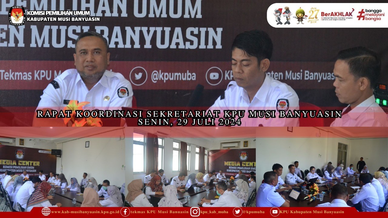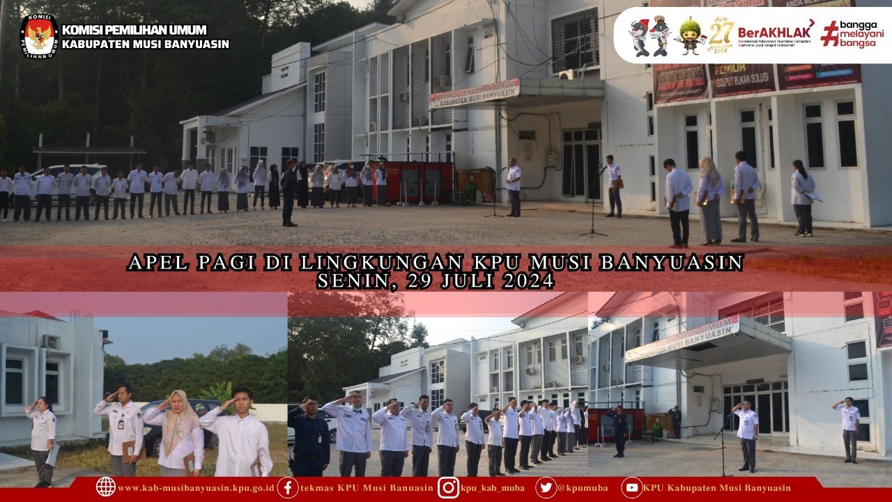 #TemanPemilih Bertempat di Halaman Kantor Komisi Pemilihan Umum Kabupaten Musi Banyuasin, KPU Kabupaten Musi Banyuasin mengadakan kegiatan apel pagi rutin, Senin, (29/06/24) Apel dimulai pada Pukul 07.30 WIB dan berlangsung dengan tertib dan lancar, Bertindak sebagai Pembina apel pada pagi hari ini, Sekretaris Komisi Pemilihan Umum Kabupaten Musi Banyuasin, bapak Dedi Irawan. Hadir pada apel pagi ini Kasubbag dan Staf Sekretariat KPU Kabupaten Musi Banyuasin, PPNPN, PKL dari Politeknik Sekayu dan SMK Negeri 1 Sekayu. Hadir sebagai pemimpin apel Jagat Saksana KPU Kabupaten Musi Banyuasin, Bambang Supriadi. Apel yang dimulai dengan menyiapkan pasukan, penghormatan kepada Pembina Apel, dilanjutkan laporan Pemimpin apel, Penghormatan kepada Bendera Merah Putih dan Amanat Pembina Apel. Apel yang berjalan dengan tertib dan lancar ini diakhiri dengan berdoa bersama sebelum melakukan seluruh rangkaian kegiatan pada hari ini. #KPUMelayani -------------------------------------- Find Us On: Facebook: Tekmas KPU Musi Banyuasin Instagram: kpu_kab_muba Youtube: KPU Kabupaten Musi Banyuasin Twitter: @kpumuba Website: www.kab-musibanyuasin.kpu.go.id Alamat: Jl. Sekayu - Muara Teladan RT. 035 RW. 010 Kelurahan Balai Agung Kec. Sekayu - Musi Banyuasin.
