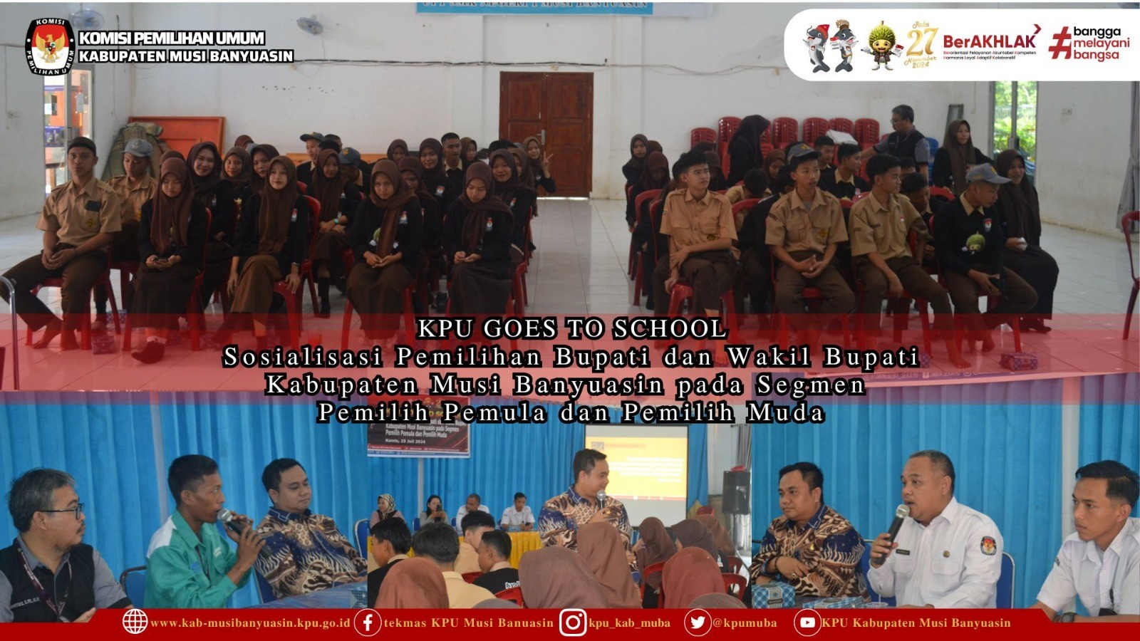 #TemanPemilih, KPU Kabupaten Musi Banyuasin Melaksanakan Kegiatan Goes To School dalam rangka Sosialisasi Pemilihan Bupati dan Wakil Bupati Kabupaten Musi Banyuasin pada Segmen Pemilih Pemula dan Pemilih Muda. (Kamis, 25/07/2024)