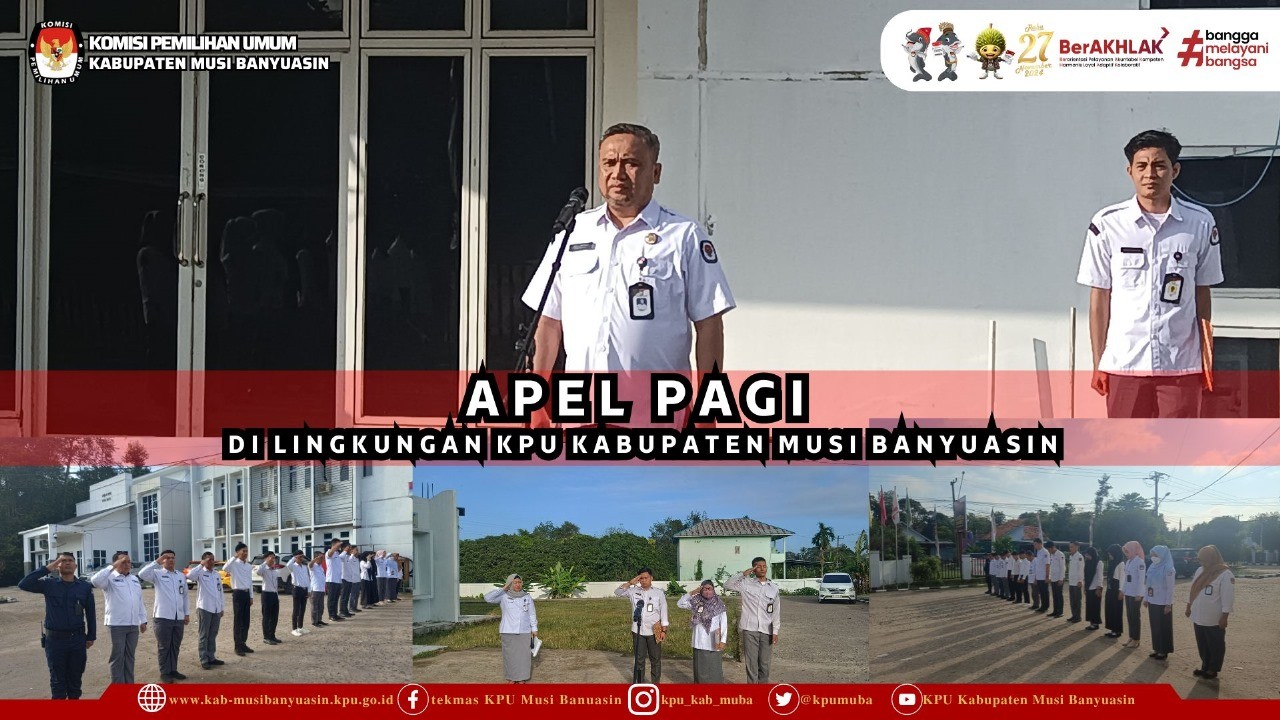 #TemanPemilih, Apel pagi setiap hari Senin, rutin dilaksanakan di lingkungan KPU Kabupaten Kabupaten Musi Banyuasin, Senin (08/07/2024). Pelaksanaan Apel rutin di halaman Kantor KPU Kabupaten Musi Banyuasin pada pukul 07.30 WIB dimulai dengan mendengarkan lagu Indonesia Raya, pembacaan UUD 1945, pembacaan Naskah Pancasila serta pembacaan Panca Prasetya KORPRI ditutup dengan Pembacaan Doa. Sekretaris (Dedi Irawan) bertindak selaku Pembina Apel Pagi. Apel ini diikuti Kasubbag, Staf PNS, PPPK, Tenaga Pendukung PPNPN di Lingkungan KPU Kab. Muba dan PKL dari SMK Negeri 1 Sekayu. #KPUMelayani #PilkadaSerentak2024 ------------------------------------ Find Us On: Facebook: Tekmas KPU Musi Banyuasin Instagram: kpu_kab_muba Youtube: KPU Kabupaten Musi Banyuasin Twitter: @kpumuba Website: www.kab-musibanyuasin.kpu.go.id Alamat: Jl. Sekayu - Muara Teladan RT. 035 RW. 010 Kelurahan Balai Agung Kec. Sekayu - Musi Banyuasin.