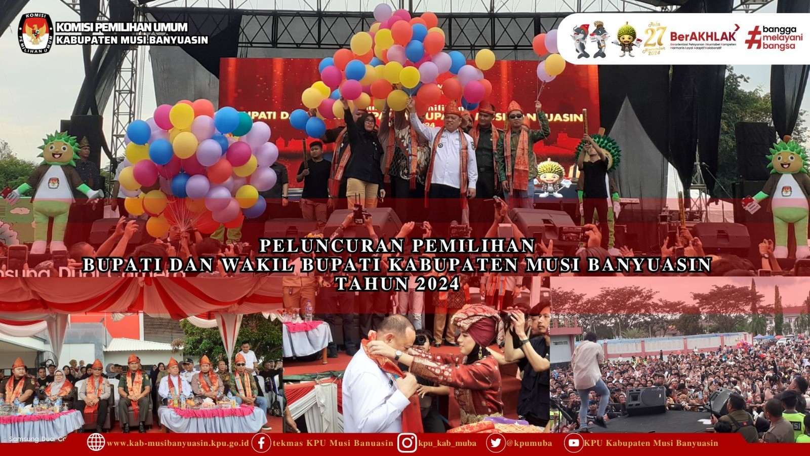 #TemanPemilih, Dalam rangka pelaksanaan tahapan Pemilihan Bupati dan Wakil Wakil Bupati Musi Banyuasin pada Pemilihan Serentak tahun 2024, KPU Kabupaten Musi Banyuasin menggelar Peluncuran Pemilihan Bupati dan Wakil Bupati Kabupaten Musi Banyuasin Tahun 2024.