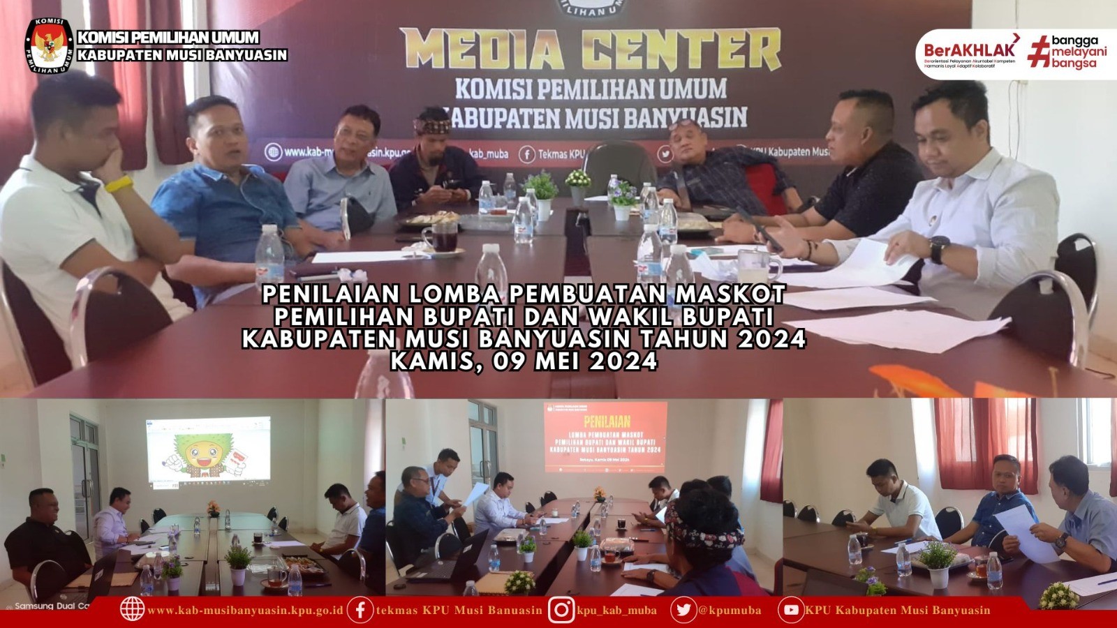 #TemanPemilih, KPU Kab.Musi Banyuasin bersama tim juri melakukan penilaian kepada beberapa peserta yang mengikuti lomba maskot untuk Pemilihan Serentak Tahun 2024 yang mana pemenang dari lomba maskot ini akan di pakai sebagai Maskot Pemilihan Serentak Tahun 2024 di Kabupaten Musi Banyuasin, Rabu (8/5/2024).