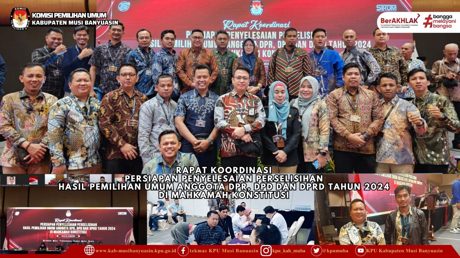#Temanpemilih Anggota KPU Kabupaten Musi Banyuasin divisi hukum dan pengawasan (Sarman) bersama divisi Teknis Penyelenggaraan (Muparid) mengikuti Rapat Koordinasi Persiapan Penyelesaian Perselisihan Hasil Pemilihan Umum Anggota DPR, DPD dan DPRD Tahun 2024 di Mahkamah Konstitusi.