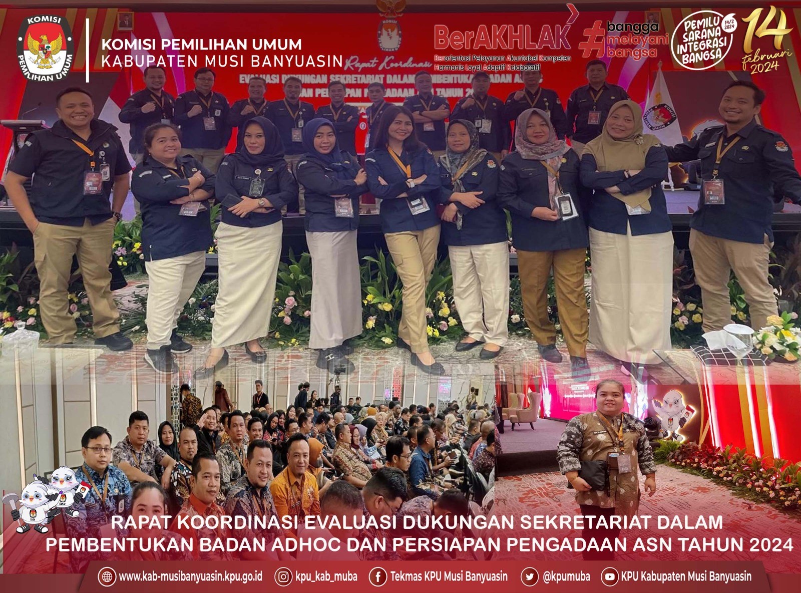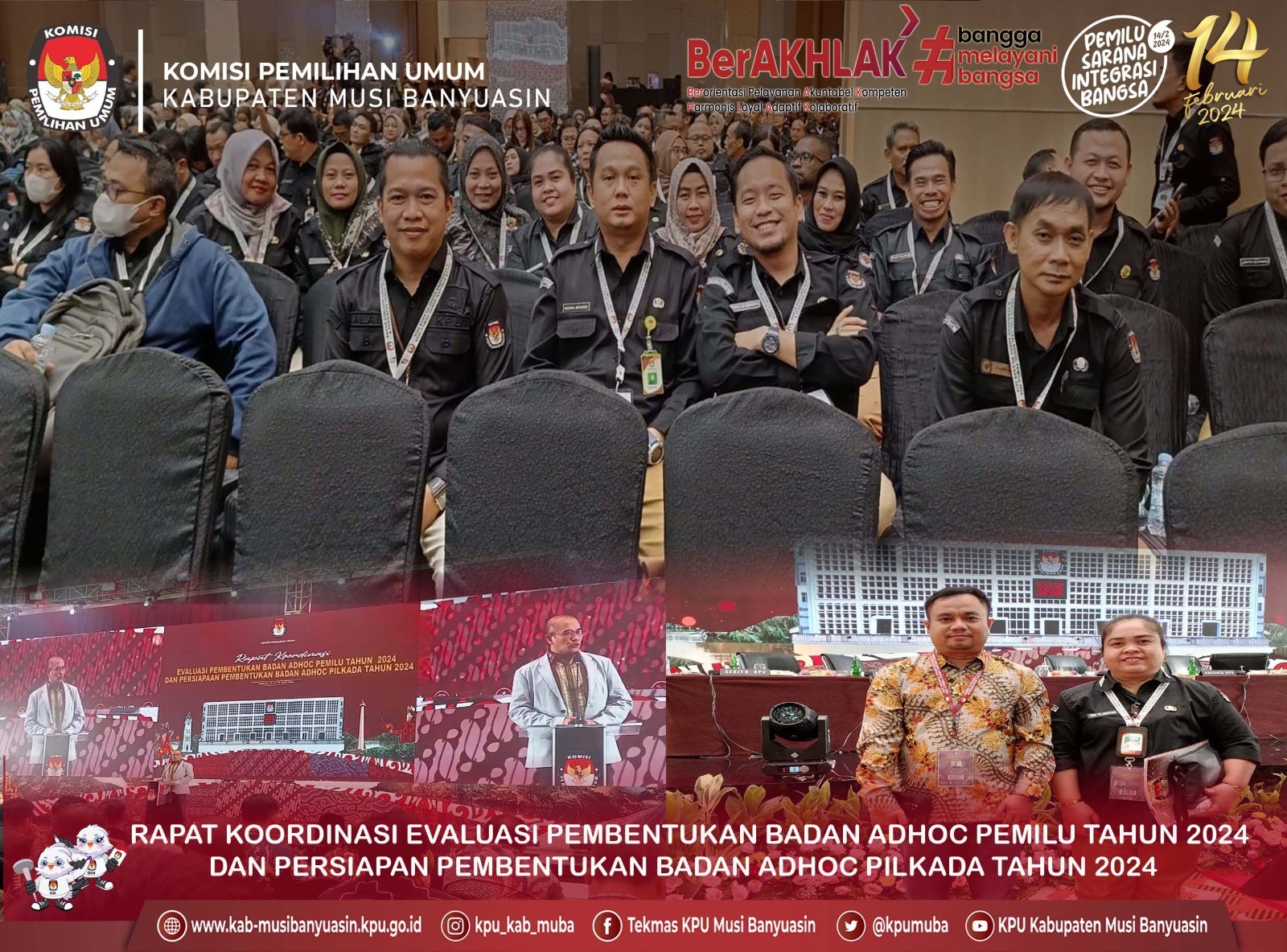 #TemanPemilih, Jumat (19/4/2024) Anggota Divisi Sosialisasi Pendidikan Pemilih, Parmas dan SDM KPU Kabupaten Musi Banyuasin bapak Arieo Pandiko didampingi Kasubbag Hukum dan SDM ibu Vera Tri Agustina menghadiri Kegiatan Rapat Koordinasi Evaluasi Pembentukan Badan Adhoc Pemilu Tahun 2024 dan Persiapan Pembentukan Badan Adhoc Pilkada Tahun 2024, di Jakarta, (17-19 April 2024).