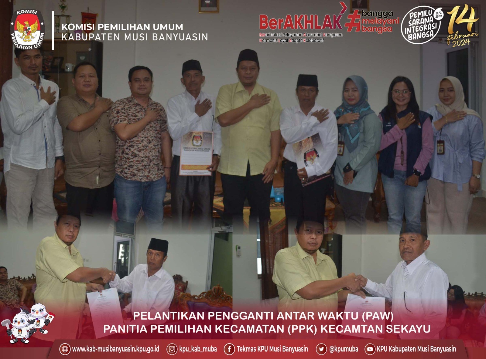 #TemanPemilih, Ketua KPU Kabupaten Musi Banyuasin (M.Sigit Nugroho) pada hari Minggu (28/1/2024) secara resmi melakukan Pelantikan dan Pengambilan Sumpah Jabatan kepada PAW PPK Sekayu bertempat di Kantor KPU Kabupaten Musi Banyuasin.