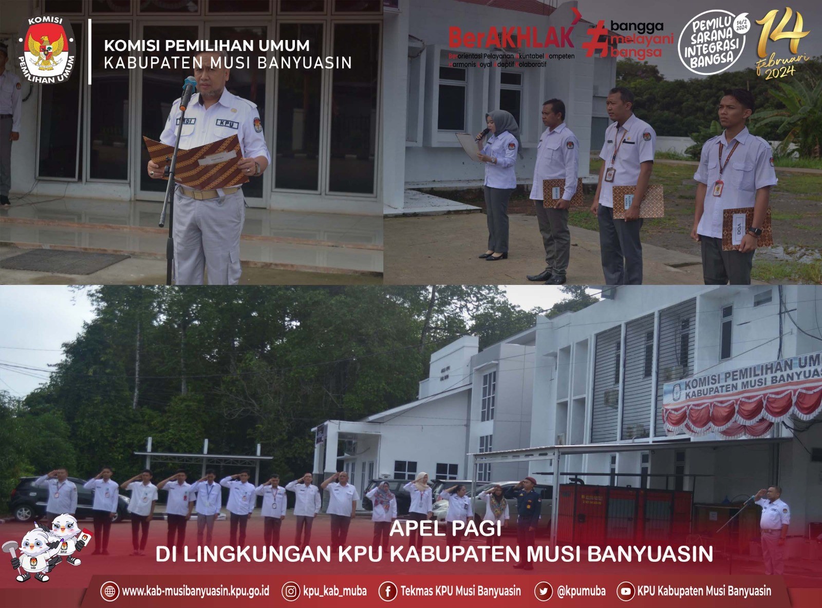 Apel diikuti oleh Sekretaris, Kasubbag, Staf PNS, Tenaga Pendukung (PPNPN) dan Jagat Saksana di Lingkungan KPU Kabupaten Musi Banyuasin.