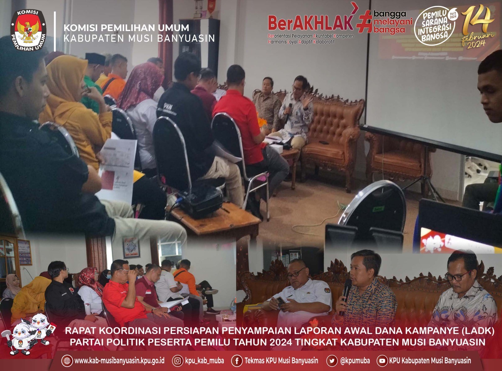 Ketua KPU Musi Banyuasin Yupizer hadir sekaligus membuka acara tersebut menyampaikan bahwa rapat koordinasi ini dilaksanakan dalam rangka penyamaan persepsi mengenai Laporan Awal Dana Kampanye (LADK) Partai Politik peserta Pemilu Tahun 2024.