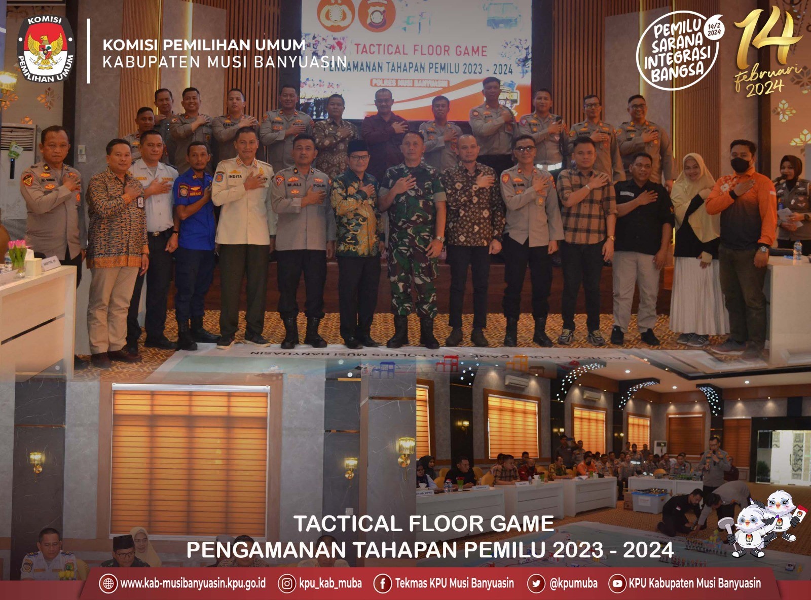 #TemanPemilih, Ketua KPU Kabupaten Musi Banyuasin Yupizer di dampingi Oleh Khoirul Anam anggota divisi Teknis penyelenggaraan, Maryani anggota divisi Sosialisasi, pendidikan pemilih, partisipasi masyarakat dan SDM, dan Amril Nurman Divisi Perencanaan Data dan Informasi Menghadiri kegiatan TACTICAL FLOOR GAME Pengamanan Tahapan Pemilu Tahun 2024 yang di laksanakan oleh POLRES Kabupaten Musi Banyuasin, Jum'at, 13/10/2023. Hadir dalam kegiatan ini ; Kapolres Musi Banyuasin KODIM 0401 Musi Banyuasin Kajari Musi Banyuasin Kesbangpol Musi Banyuasin BAWASLU Musi Banyuasin Camat Sekayu SATPOL PP Musi Banyuasin BPBD Musi Banyuasin Dishub Musi Banyuasin #KPUMelayani #PemiluSerentak2024 ------------------------------------ Find Us On: Facebook: Tekmas KPU Musi Banyuasin Instagram: kpu_kab_muba Youtube: KPU Kabupaten Musi Banyuasin Twitter: @kpumuba Website: www.kab-musibanyuasin.kpu.go.id Alamat: Jl. Sekayu - Muara Teladan RT. 035 RW. 010 Kelurahan Balai Agung Kec. Sekayu - Musi Banyuasin.