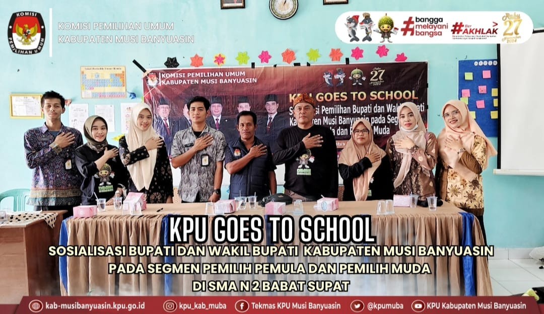 #TemanPemilih, Sekretariat KPU Kabupaten Musi Banyuasin melakukan Monitoring Kegiatan Goes To School dalam rangka Sosialisasi Pemilihan Bupati dan Wakil Bupati Kabupaten Musi Banyuasin pada Segmen Pemilih Pemula dan Pemilih Muda (Selasa, 20/08/2024). Acara Sosialisasi dilaksanakan di SMA Negeri 1 Sungai Keruh acara di buka langgsung oleh Ketua PPK Sungai Keruh dihadiri Kasubbag Hukum dan SDM, Jajaran Sekretariat KPU Kabupaten Musi Banyuasin, Anggota PPK, sekretariat PPK Sungai Keruh serta Dewan Guru SMA Negeri 1 Sungai Keruh dan sebagai peserta melibatkan siswa siswi SMA Negeri 1 Sungai Keruh sebagai Pemilih Pemula dan Pemilih Muda di Kecamatan Sungai Keruh yang sudah berusia 17 Tahun pada saat pemilihan Serentak 27 November 2024. #KPUMelayani #PikadaSerentak2024 KPU Republik Indonesia KPU Provinsi Sumatera Selatan Tekmas KPU Musi Banyuasin ------------------------------------ Find Us On: Facebook: Tekmas KPU Musi Banyuasin Instagram kpu_kab_muba Youtube: KPU Kabupaten Musi Banyuasin Twitter: @kpumuba Website: www.kab-musibanyuasin.kpu.go.id Alamat: Jl. Sekayu - Muara Teladan RT. 035 RW. 010 Kelurahan Balai Agung Kec. Sekayu - Musi Banyuasin. www.kab-musibanyuasin.kpu.go.id Alamat: Jl. Sekayu - Muara Teladan RT. 035 RW. 010 Kelurahan Balai Agung Kec. Sekayu - Musi Banyuasin