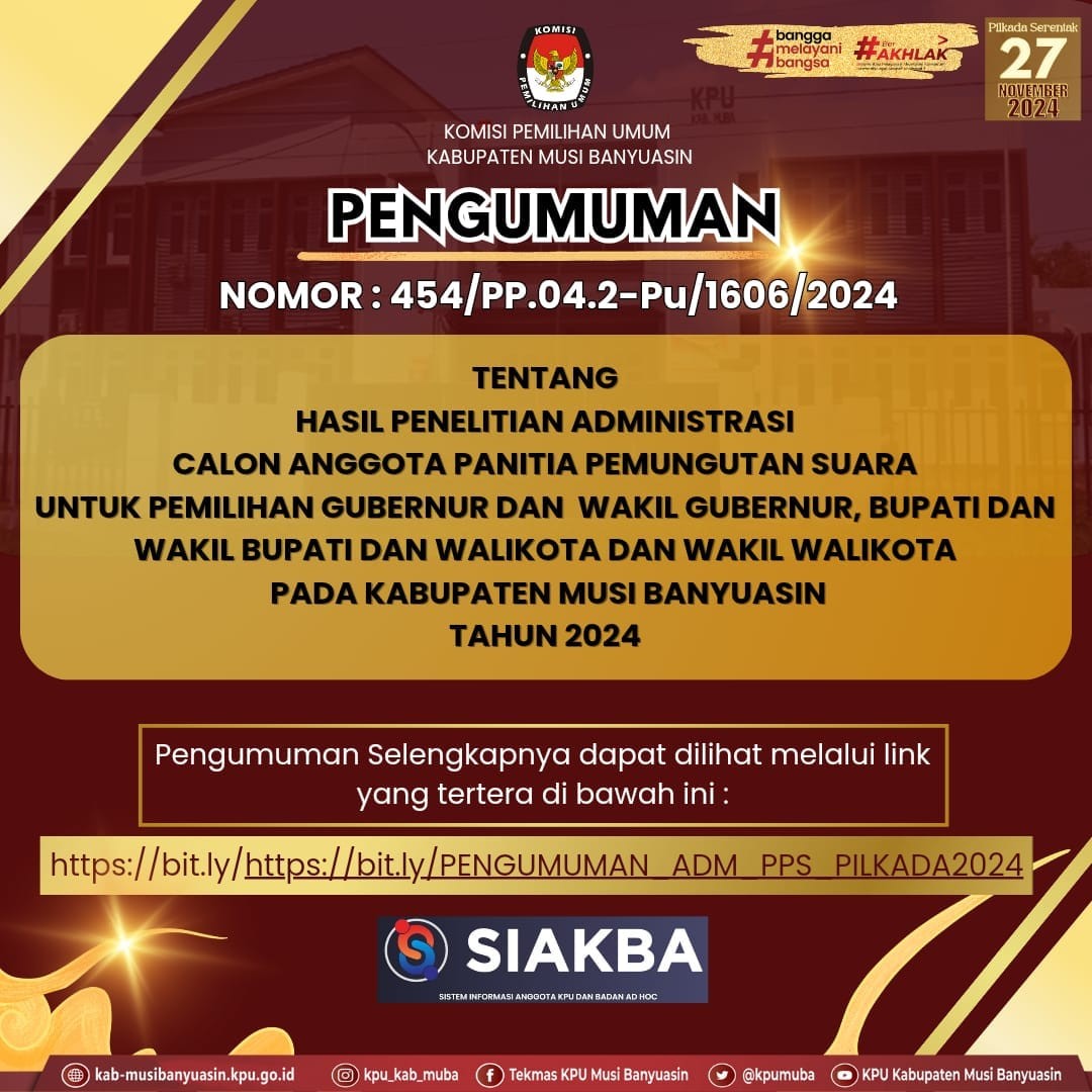 #TemanPemilih, berikut Pengumuman Lomba Senjang Nomor: 448/HM.02-PU/1606/2024,